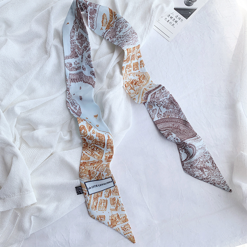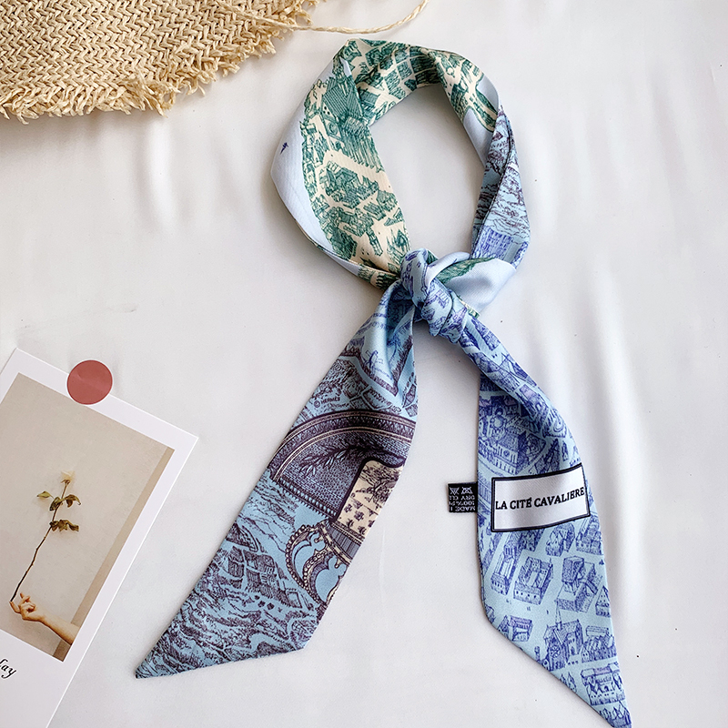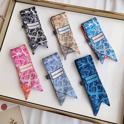小丝巾女春秋韩国百搭细窄长条领巾围巾腰带飘带包包装饰印花丝带