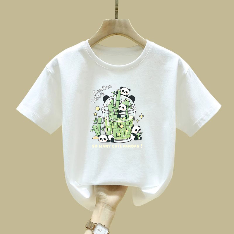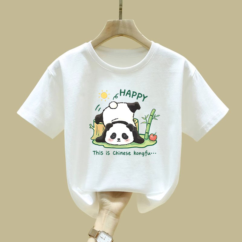 夏天儿童短袖T恤夏装2025新款纯棉男童洋气中大童装女童熊猫上衣