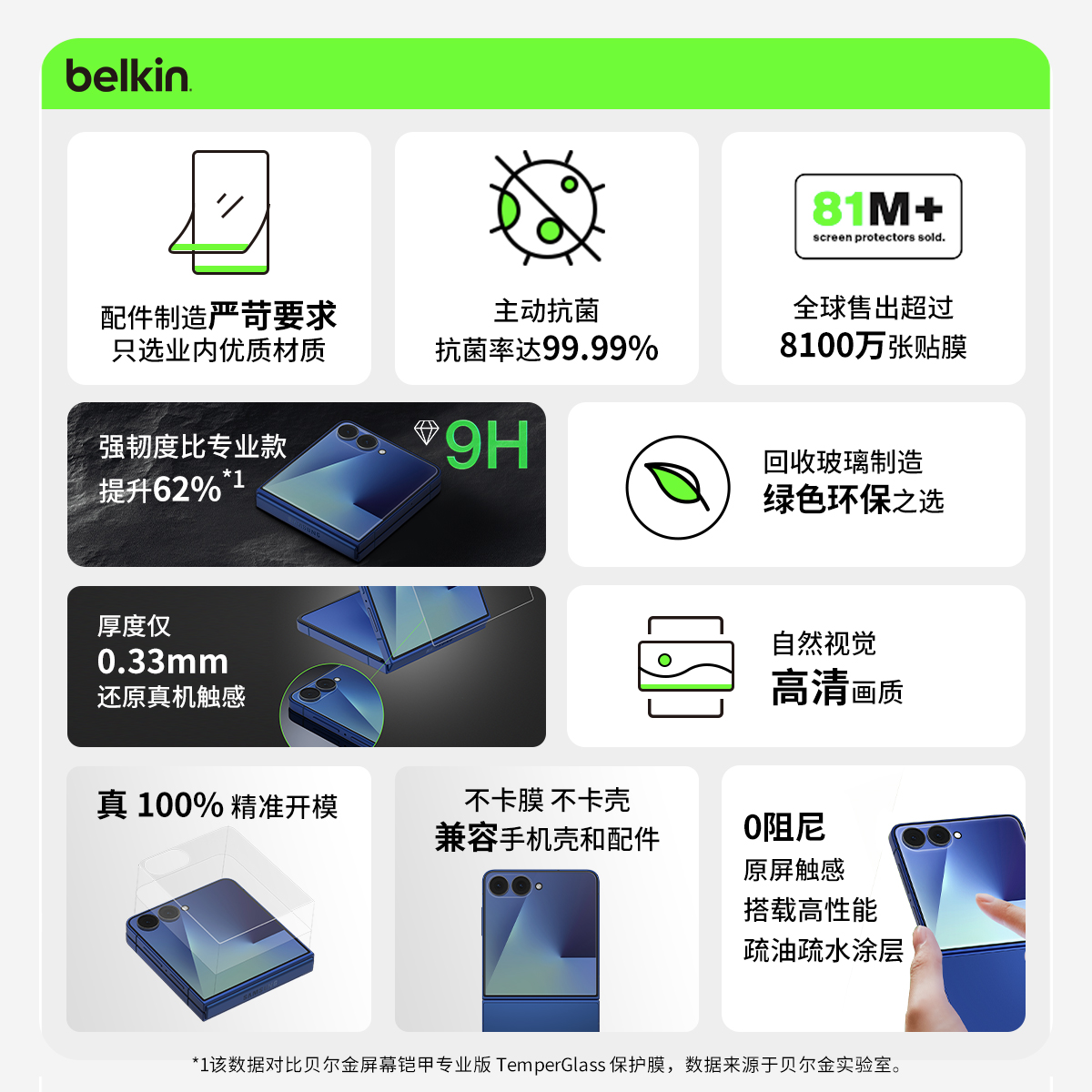 贝尔金适用三星Galaxy Z Flip 7外屏膜zflip7折叠屏手机钢化膜高清9H防摔抗菌手机保护膜