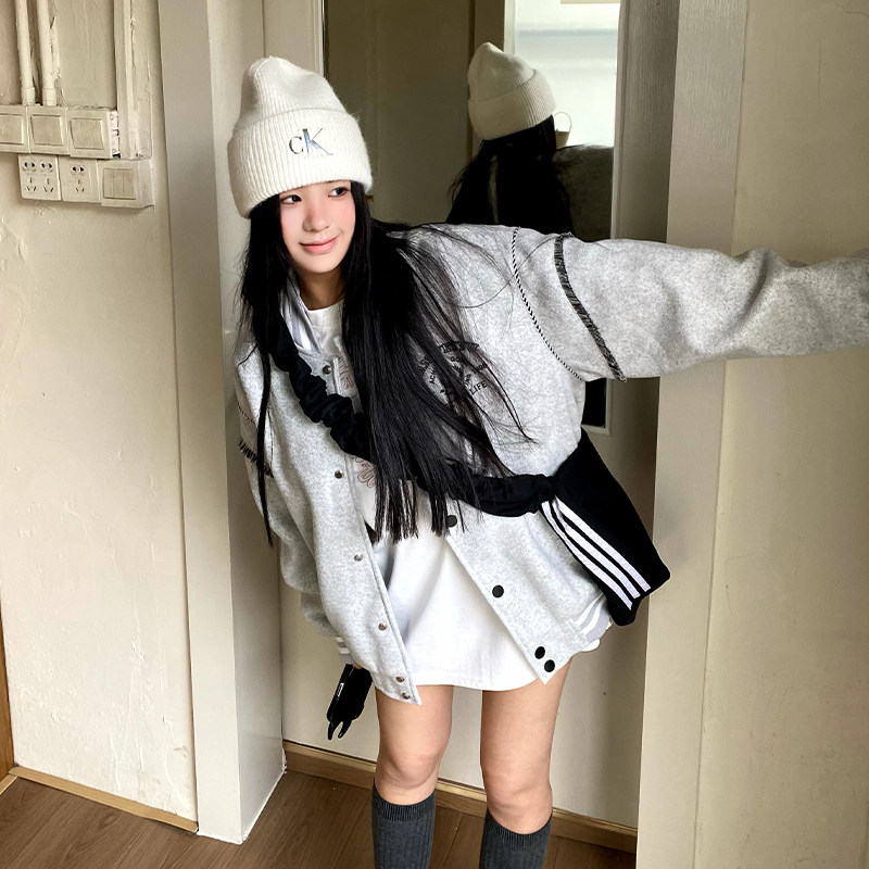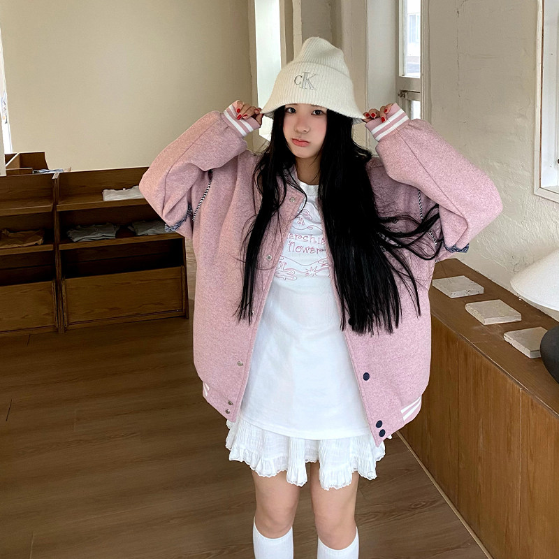 饭饭又饿了学院风拼接棒球服外套