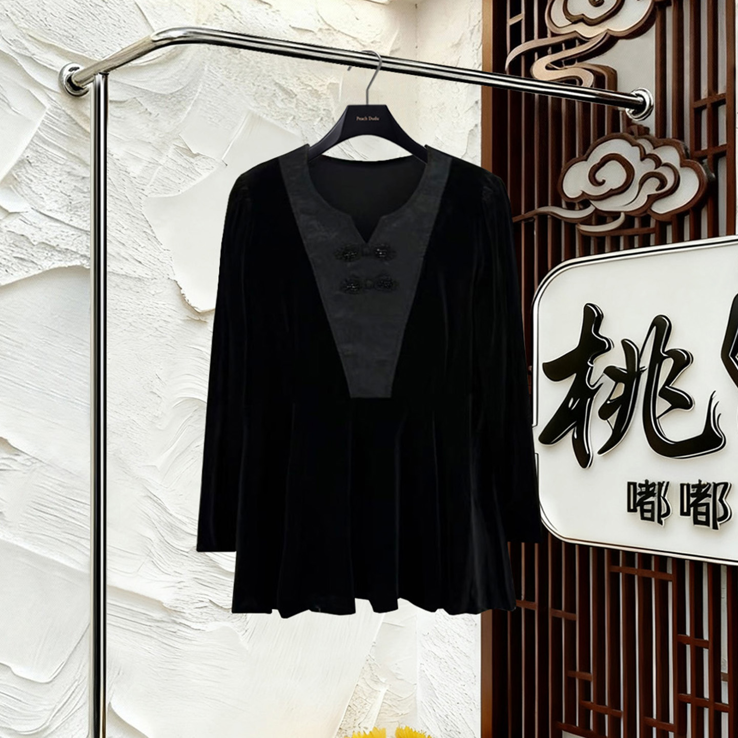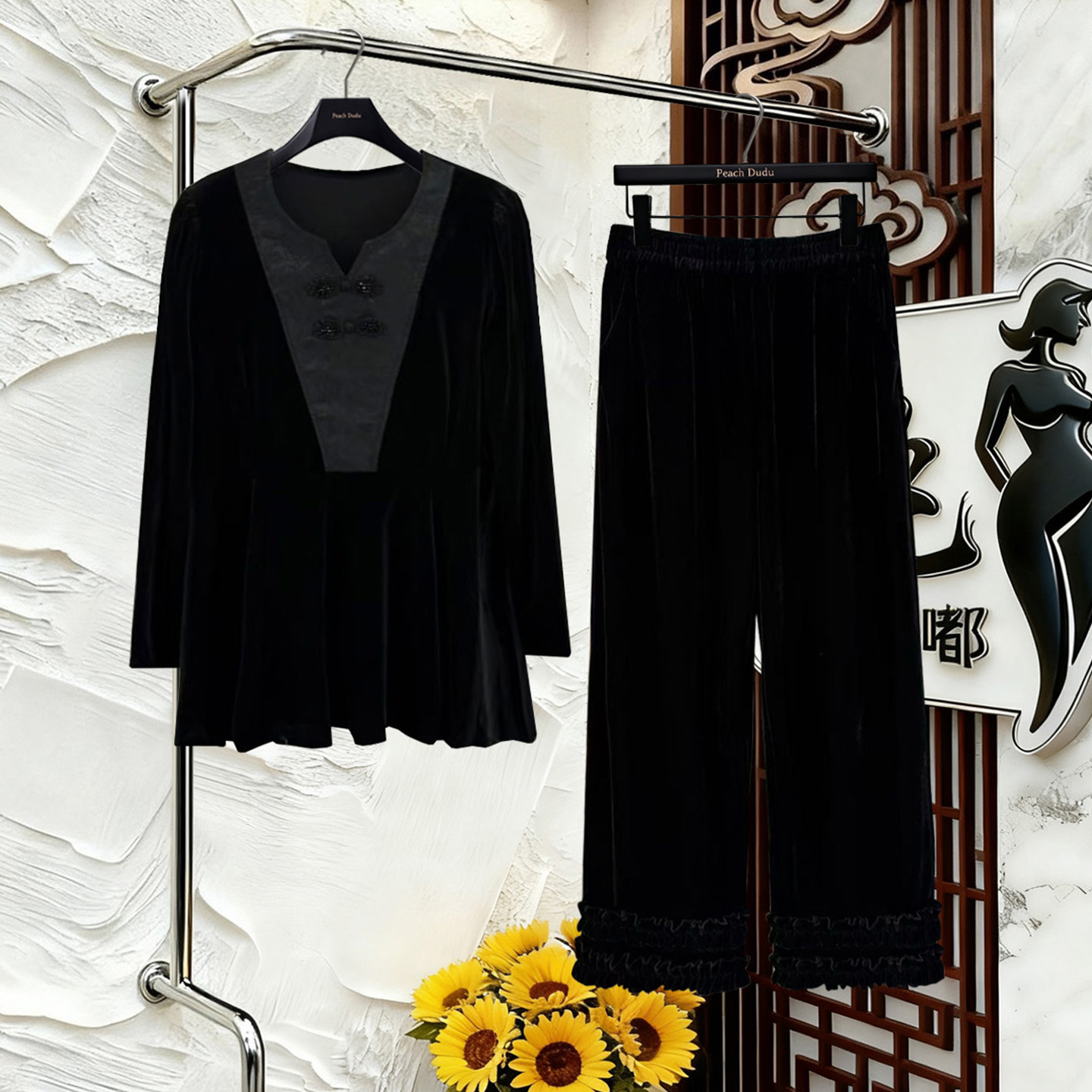 新中式国风特大码女装2025秋季新款高级感丝绒上衣裤子胖mm两件套