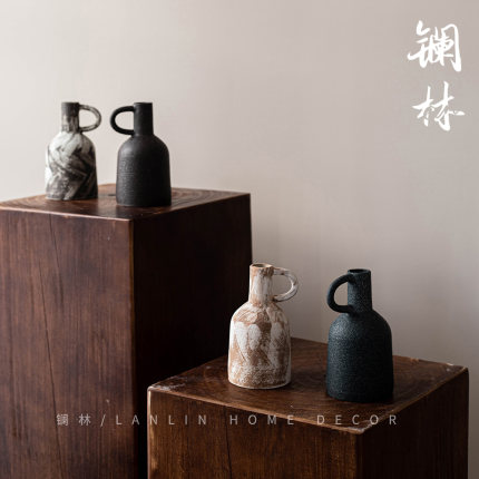 侘寂风单耳提壶小花瓶手工复古陶瓷花器书房餐桌家居装饰干花花插