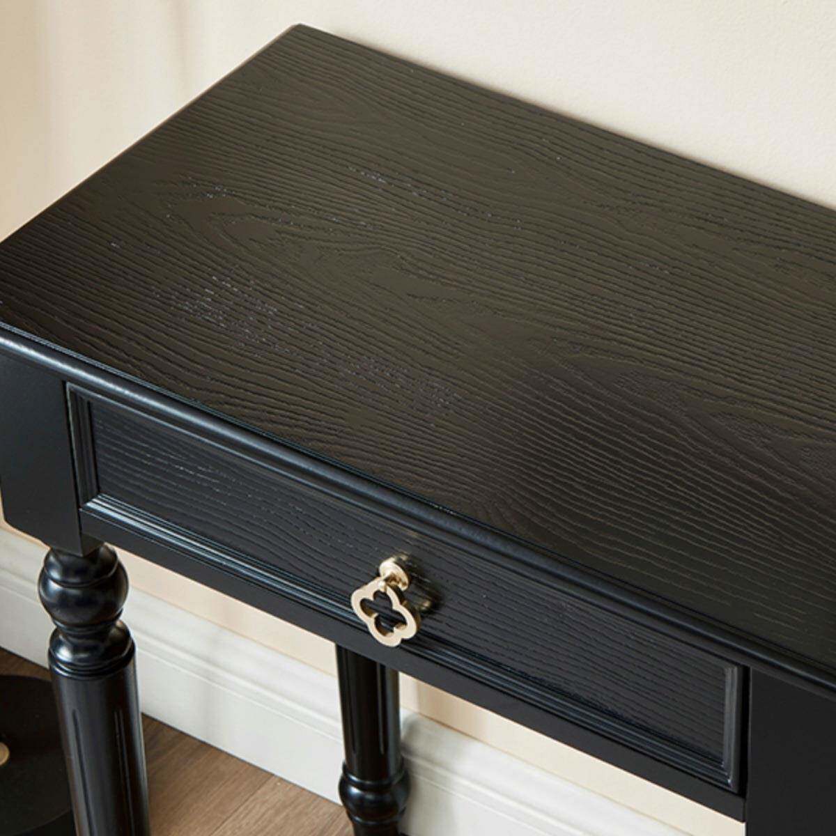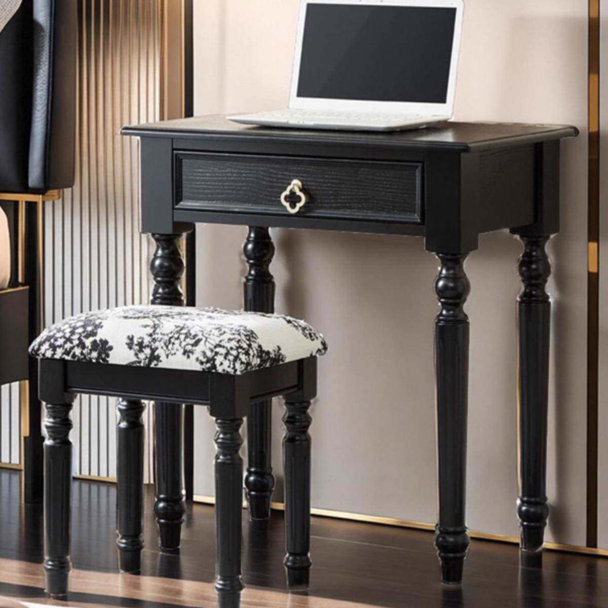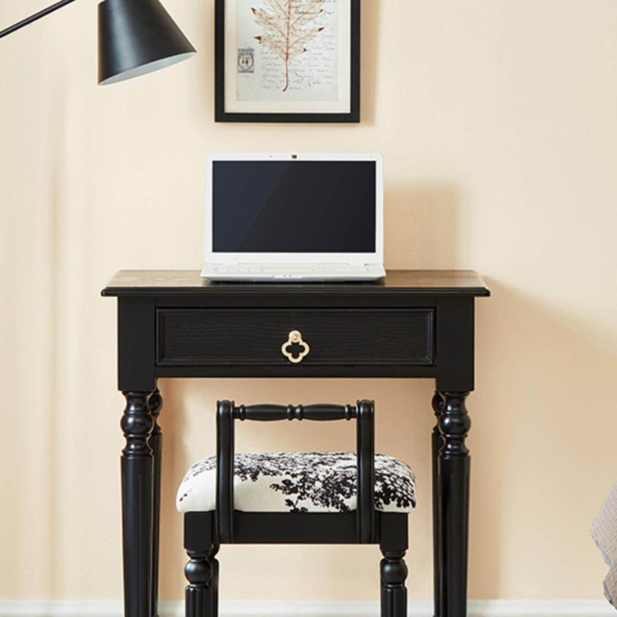 法式书房卧室小户型实木小书桌学生家用儿童学习桌写字中古风黑色