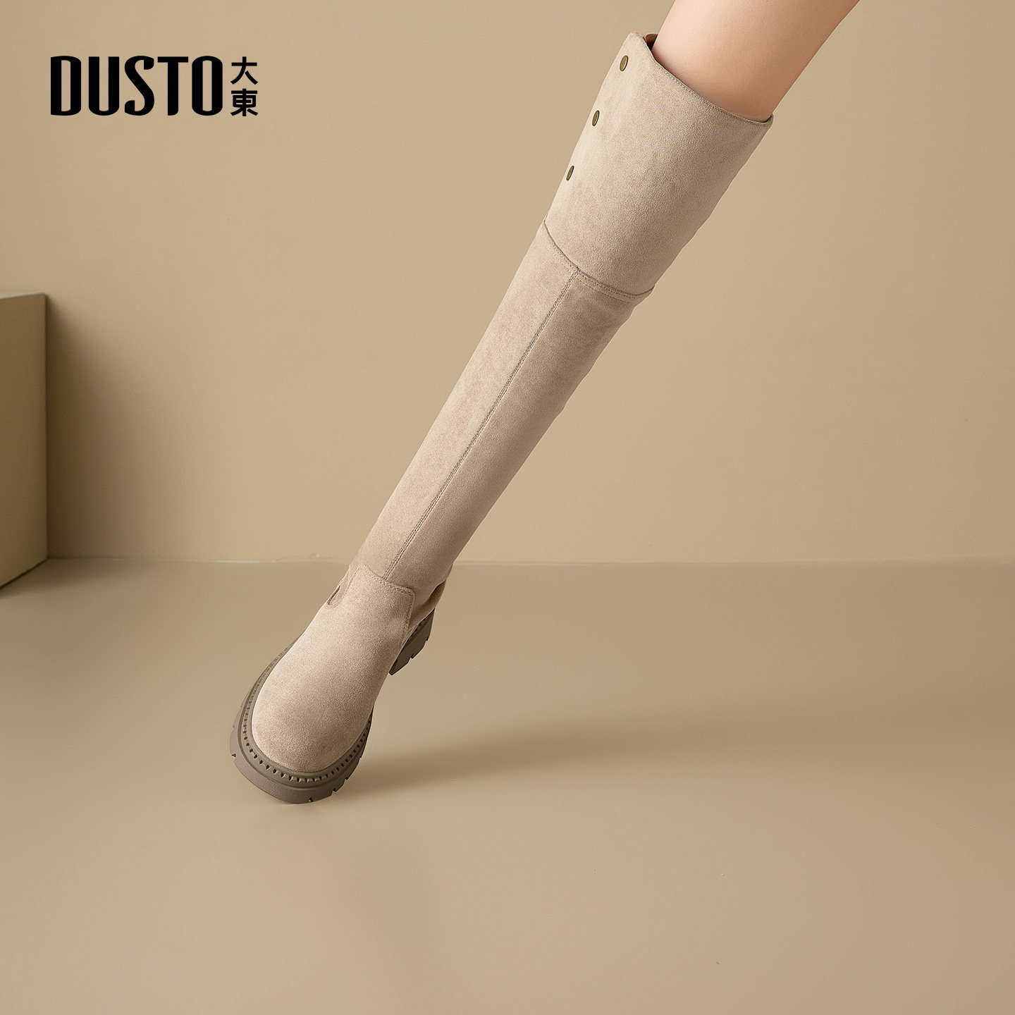 大东过膝长筒靴女秋冬2025新款小个子厚底绒面靴子弹力靴高筒长靴