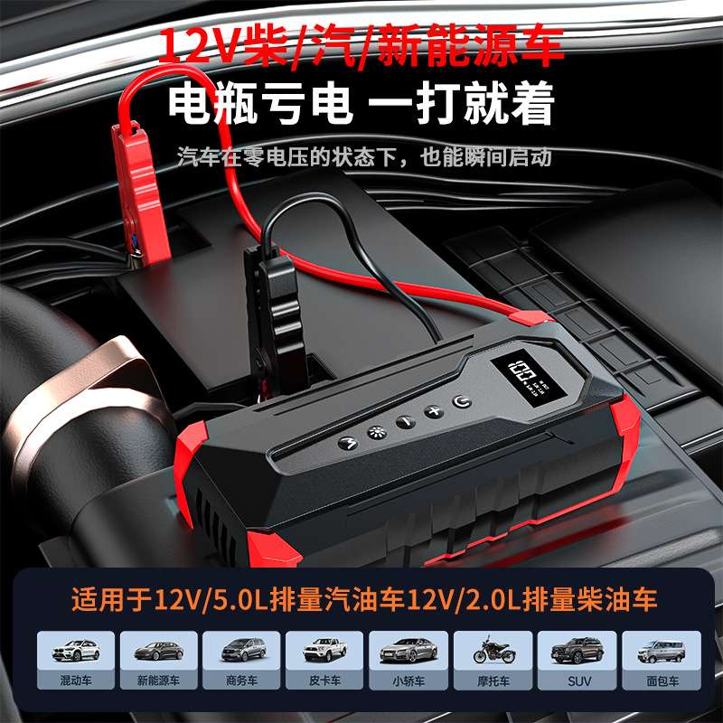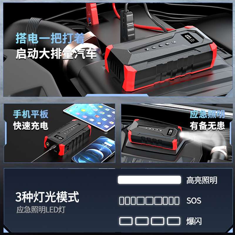 汽车应急紧急启动电源12强起小车搭电宝大容量汽车充气搭电一体机