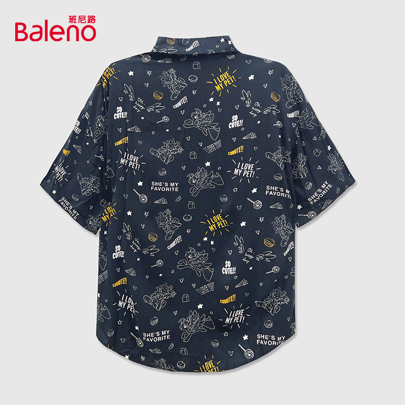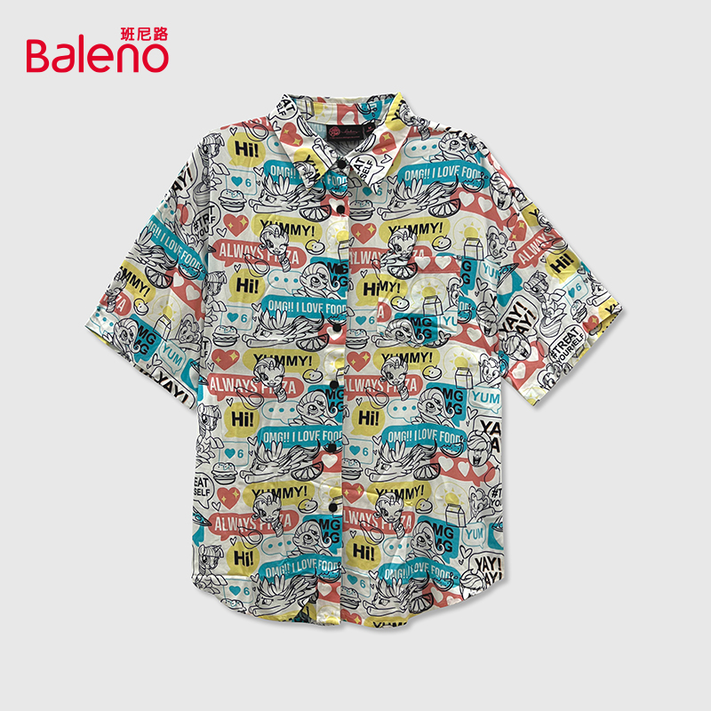 班尼路2025夏季新款女装littlepony满地印短袖衬衫薄款时尚沙滩服