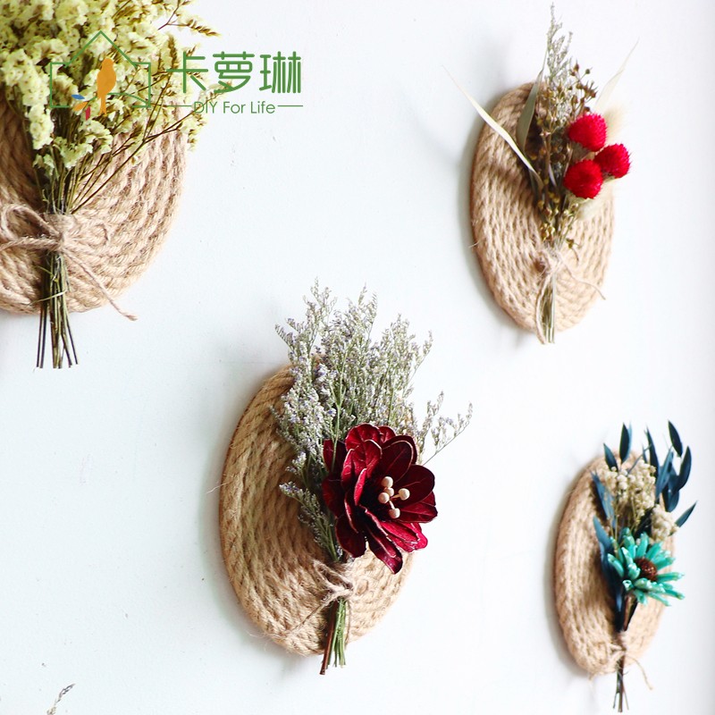 北欧风格家居玄关干花壁饰麻绳背景墙面装饰创意墙上花卉挂件壁挂