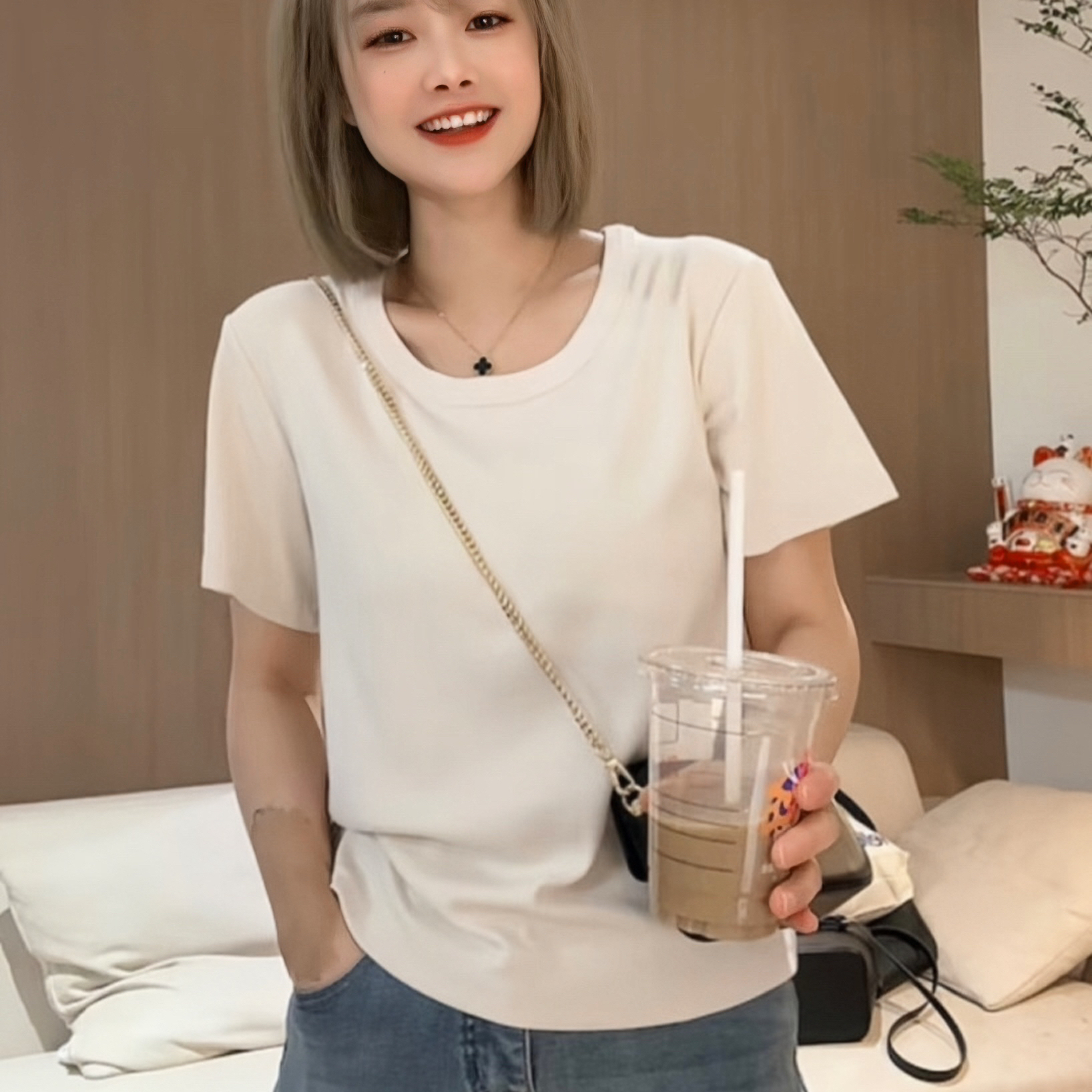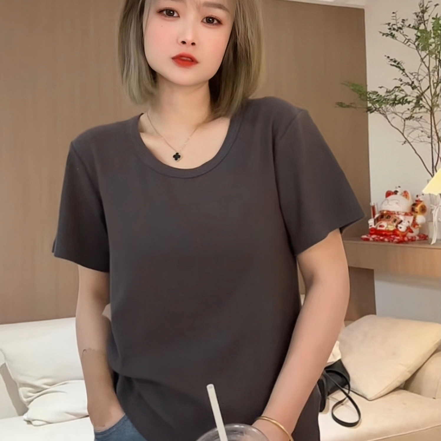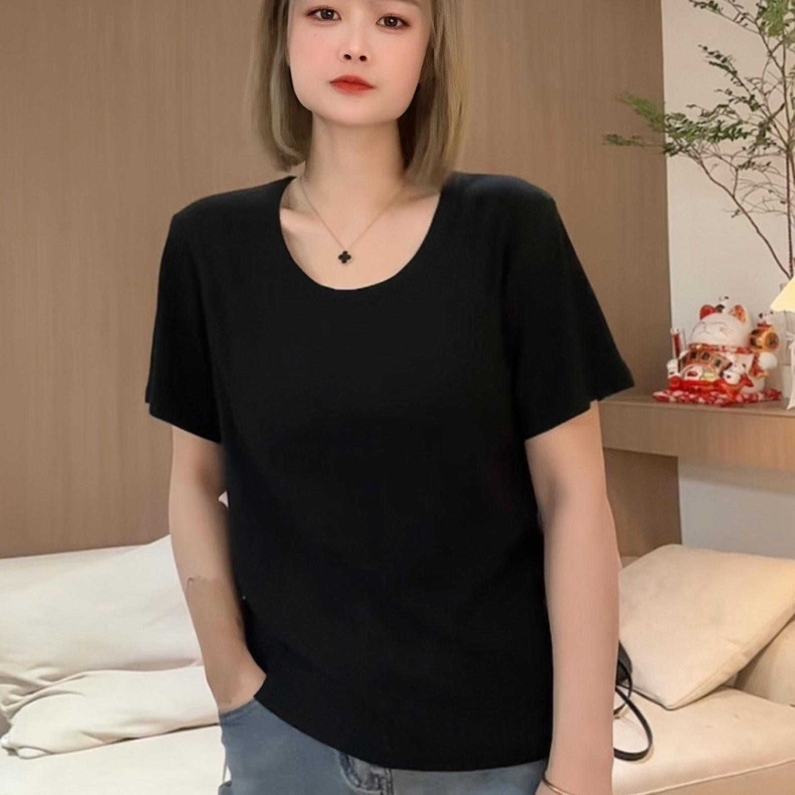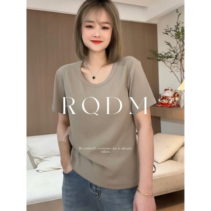 大码女装2025夏季新款胖MM柔软空气感弹力显瘦U领正肩短袖T恤上衣