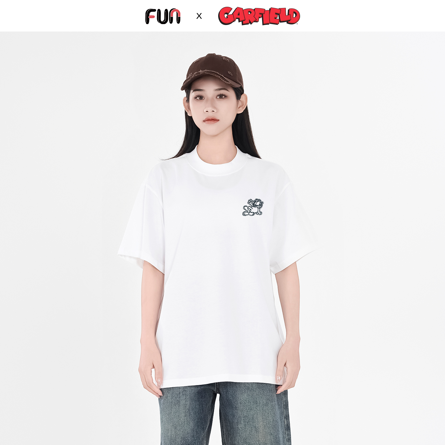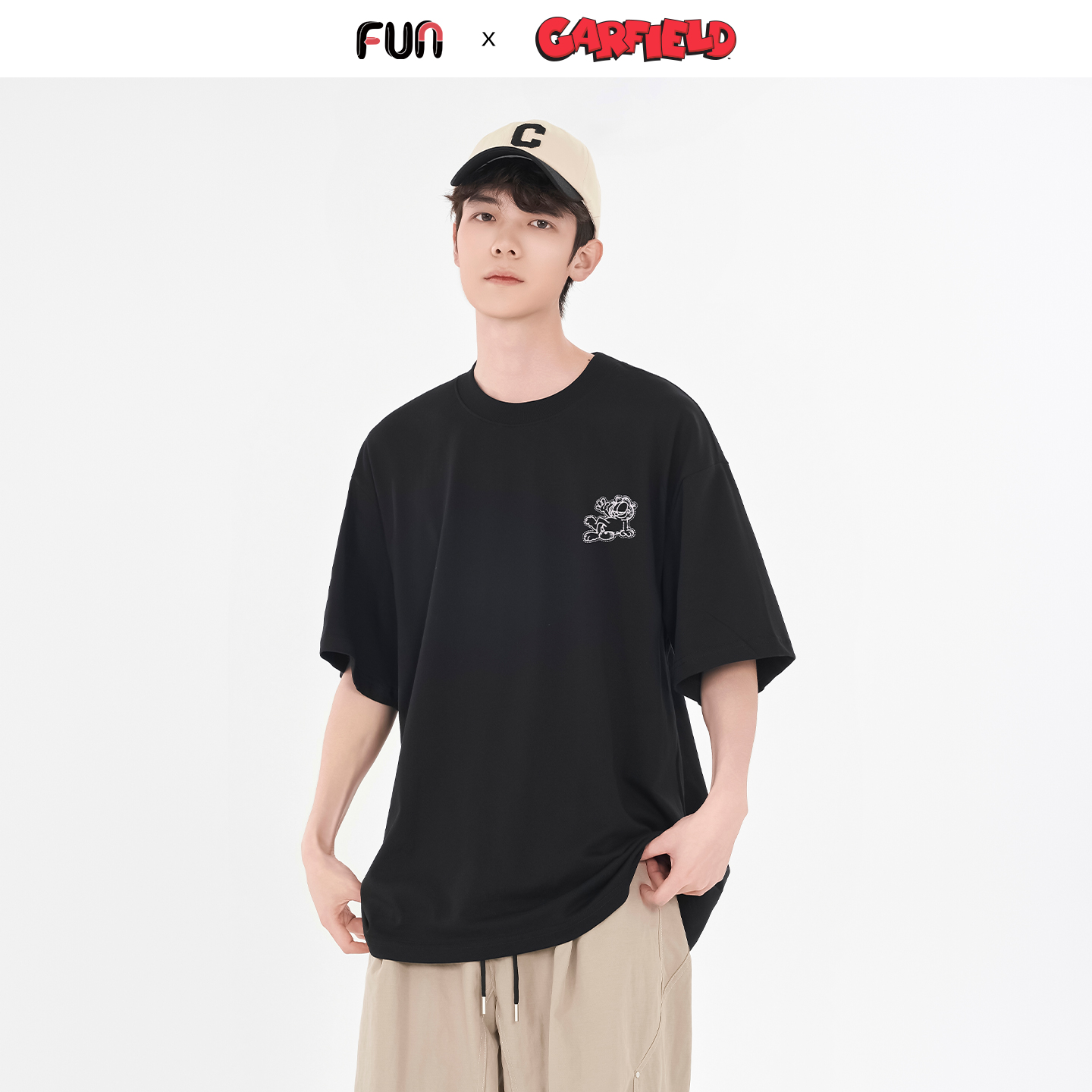 Fun【猫头绣花】加菲猫联名男女同款抗菌凉感短袖T恤夏季短t恤