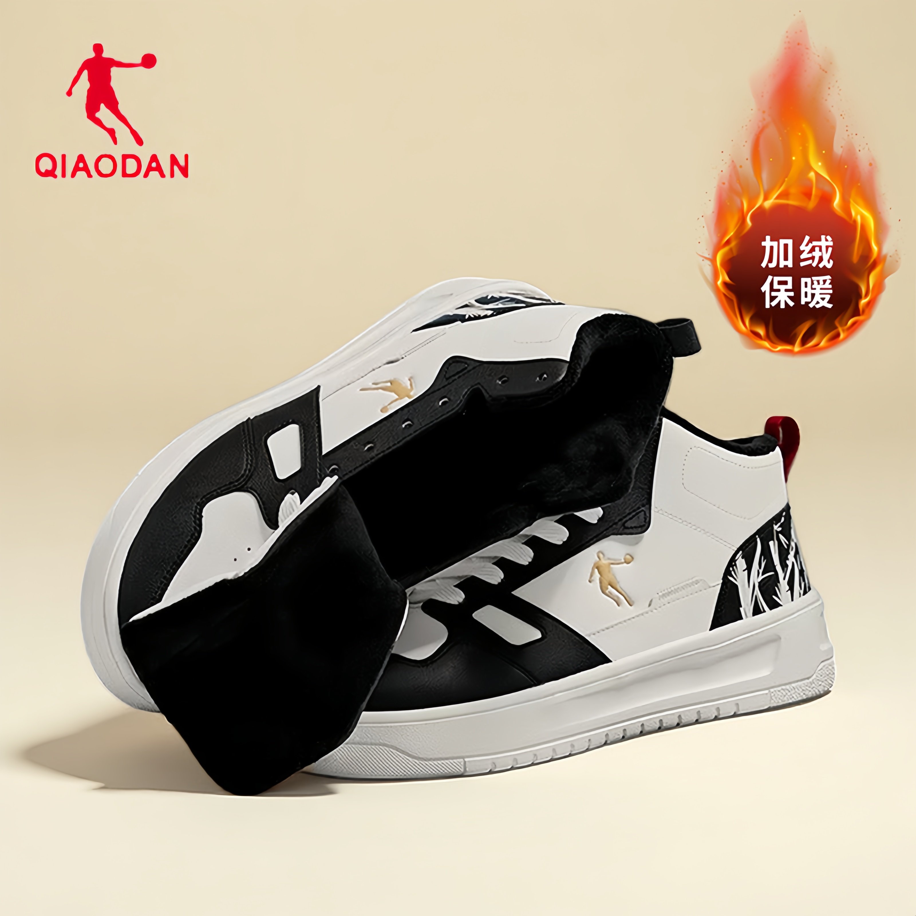 乔丹男鞋棉鞋2025冬季季新款厚底保暖加绒高帮板鞋防滑防水运动鞋