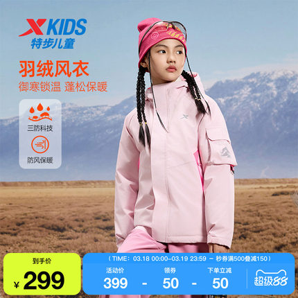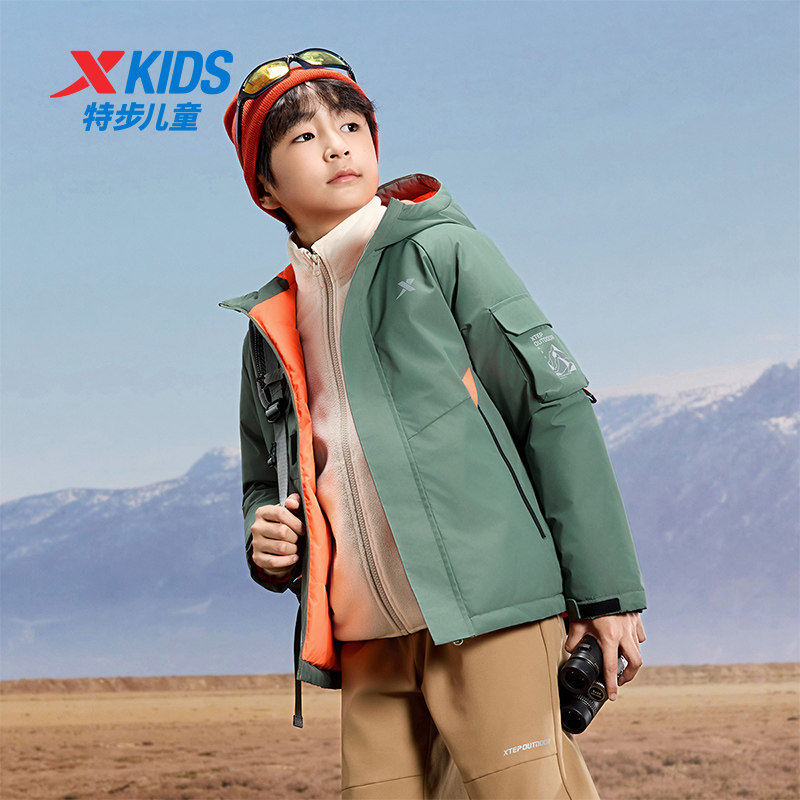特步童装儿童羽绒服男童秋冬季新款保暖防风中大童厚外套女童上衣