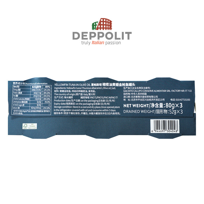 意帕斯塔橄榄油浸黄鳍金枪鱼罐头意大利进口开罐即食