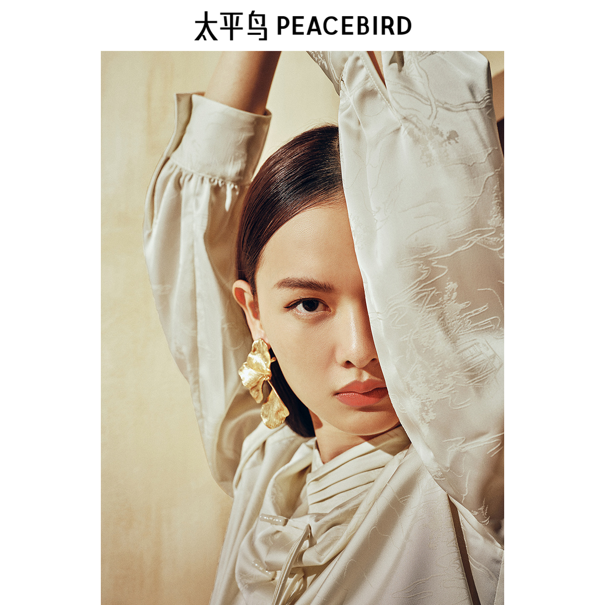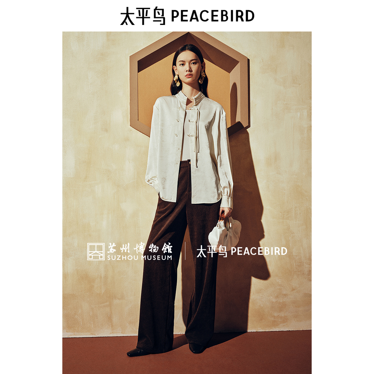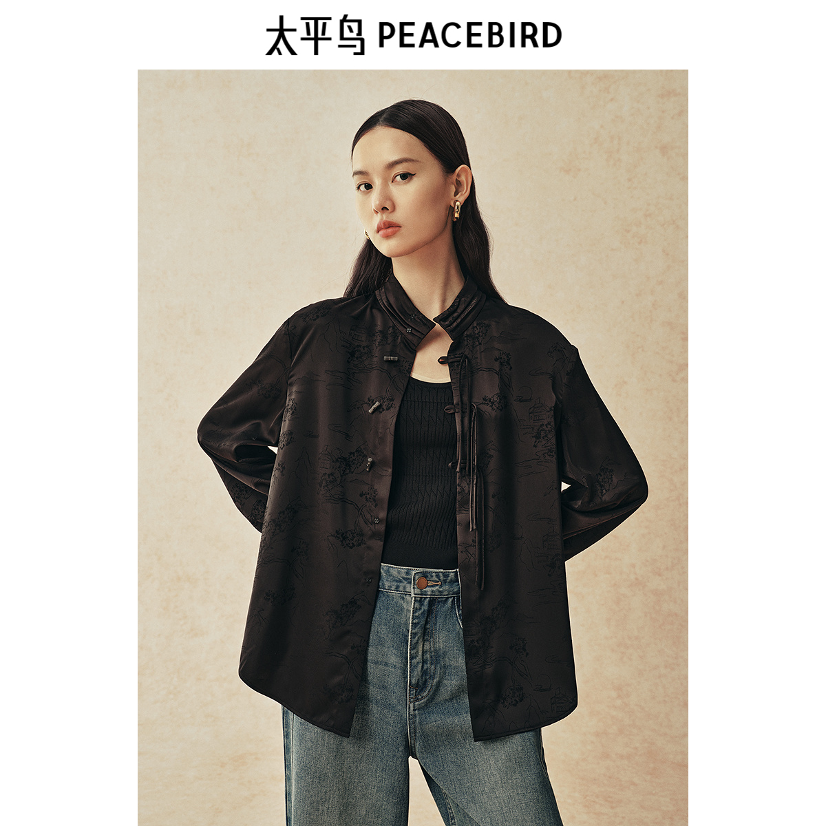 【苏州博物馆 x 太平鸟联名合作系列】24冬国风缎面提花长袖衬衫