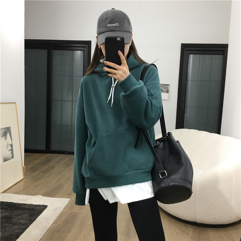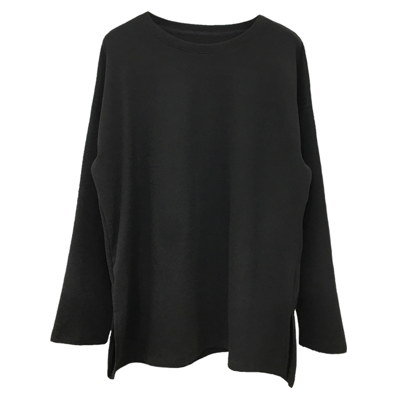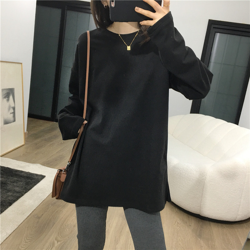 细米定制 春秋新款纯色圆领宽松休闲中长款白色长袖棉T恤打底衫女