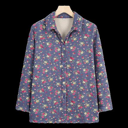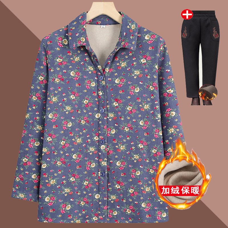 奶奶秋装长袖德绒衬衫60岁70老太太薄绒衬衣老年人外套女上衣妈妈