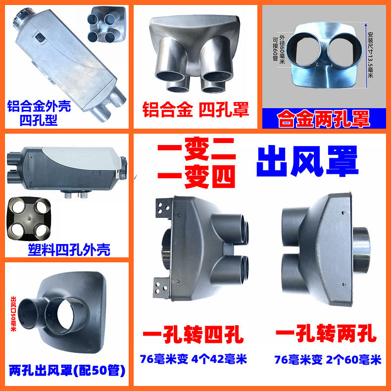 柴暖外壳出风口罩配件铝合金变径二四孔头 驻车加热器出风罩配件