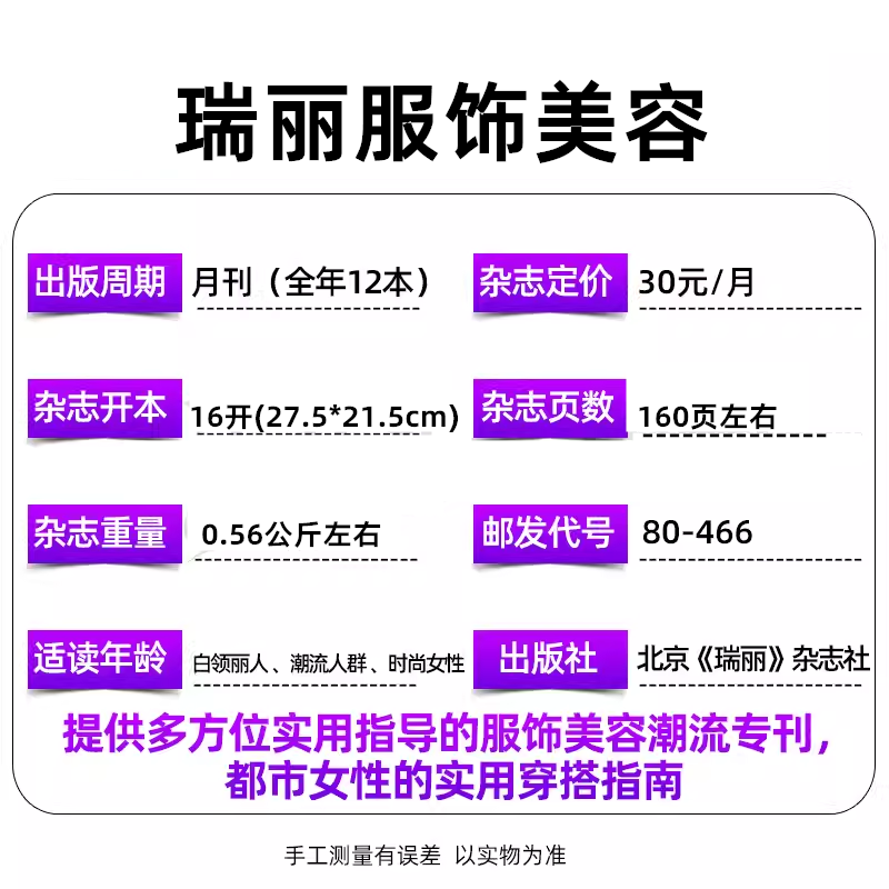 【全年订阅】瑞丽服饰美容杂志 2026年1-12月双月刊共6期 全年订阅时尚服饰期刊瑞丽昕薇米娜美眉系列美容化妆技巧