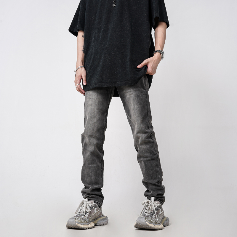 Z POCKET美式高街灰色直筒修身小脚弹力牛仔裤男休闲裤子潮牌男女