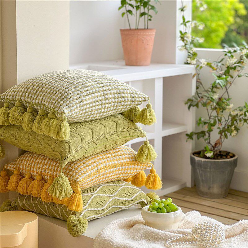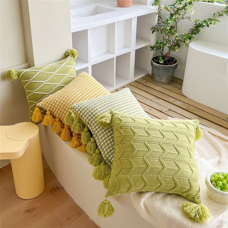 极速薄荷绿针织小清新纯色毛线靠B垫飘窗流苏沙发客厅卧室抱枕套