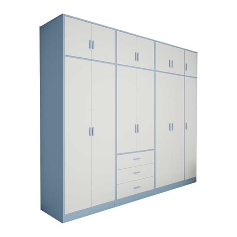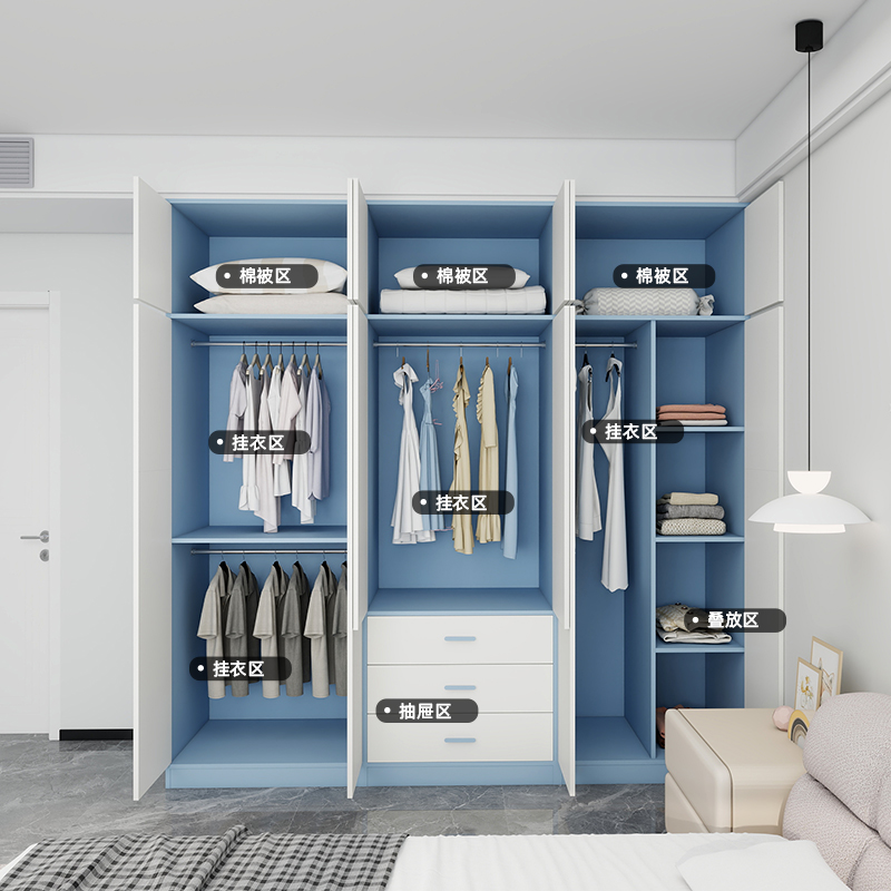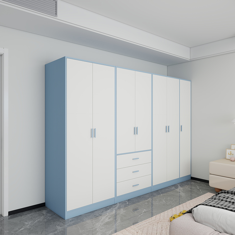 定制儿童房衣柜小户型家用卧室男女孩蓝色整墙到顶实木衣橱收纳柜