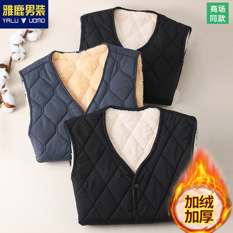雅鹿男装秋冬季马甲加绒加厚保暖