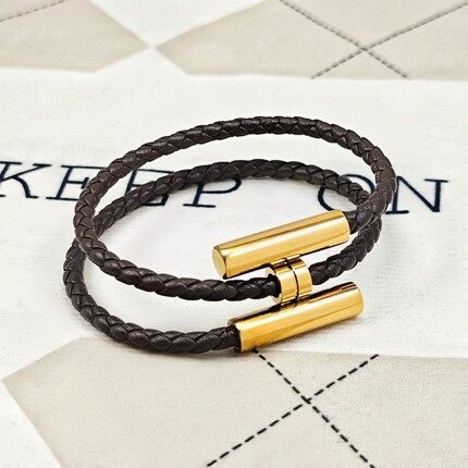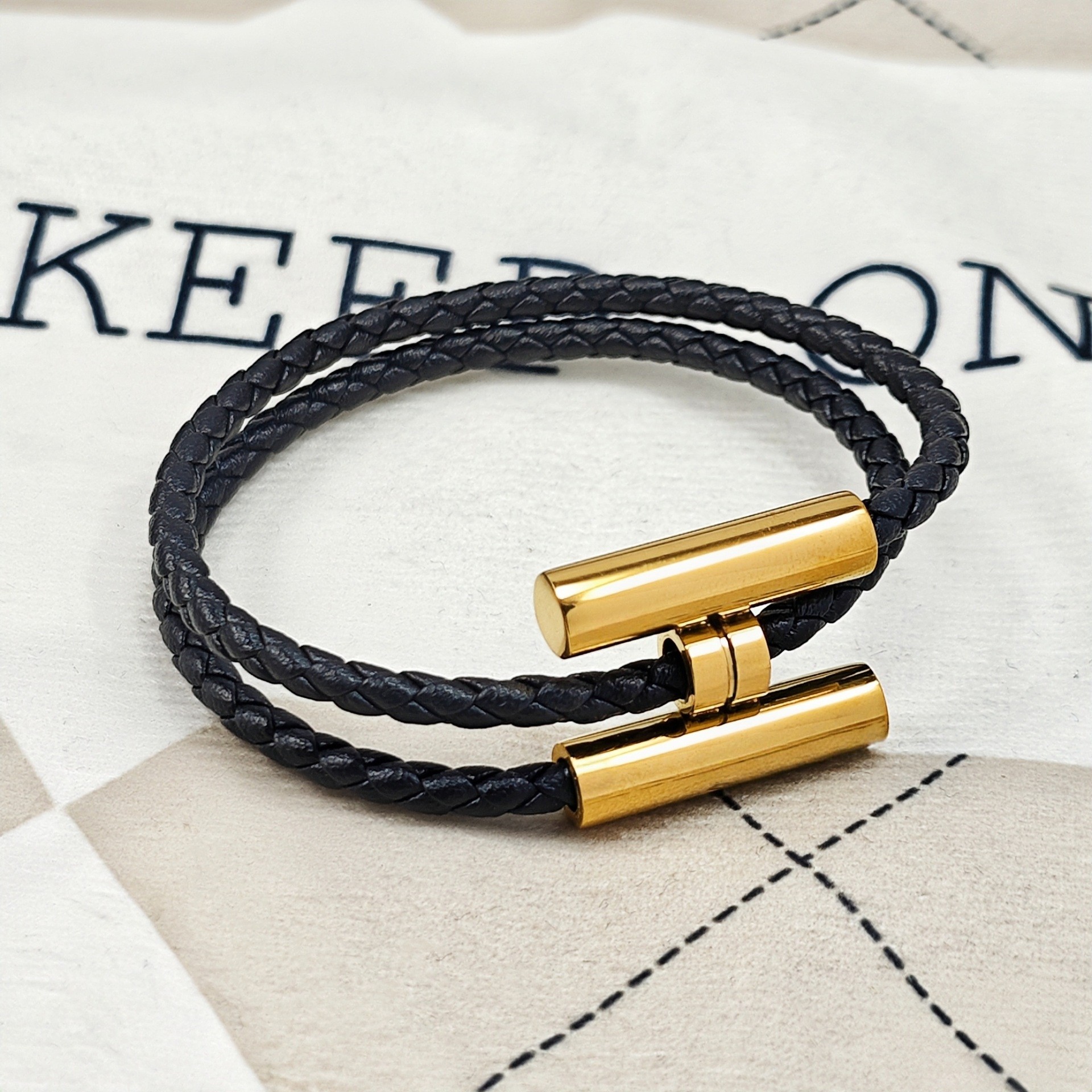 欧美H扣钛钢皮手绳手链男士女手镯情侣手环高端品质百搭情人礼物