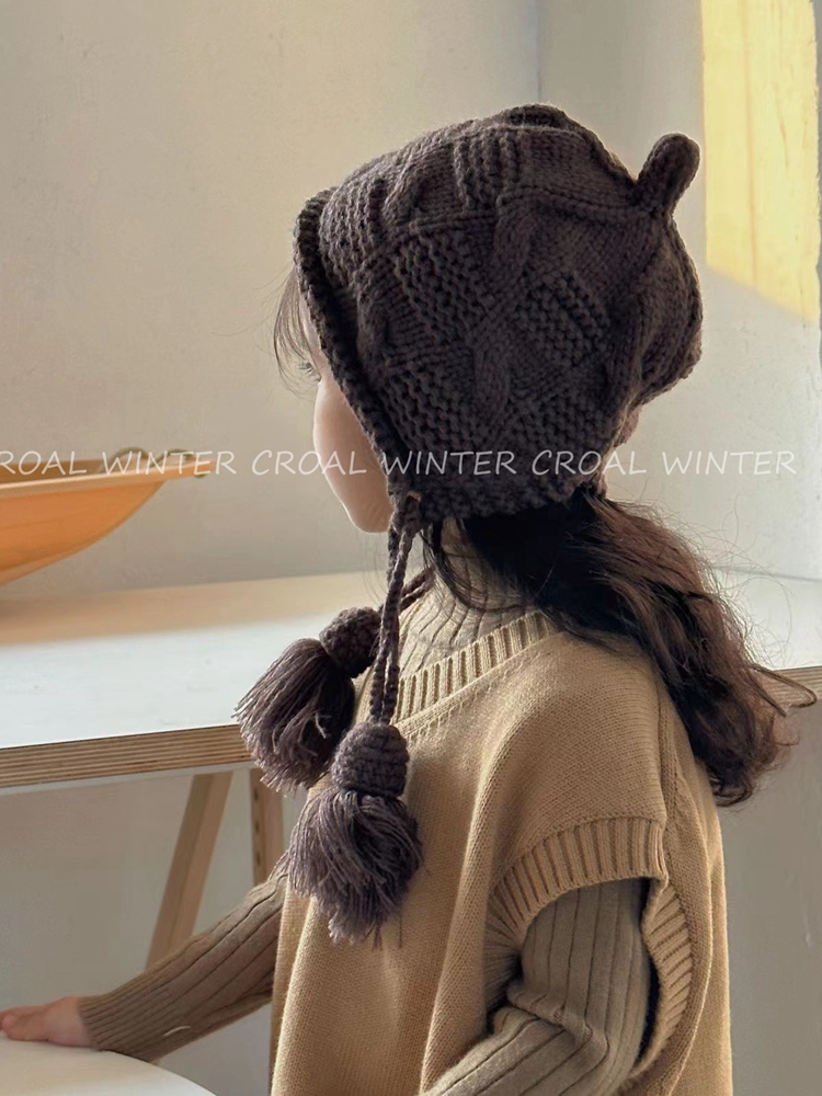 针织帽女儿童时尚百搭小女孩纯色毛线帽男女童秋冬季新款保暖帽子