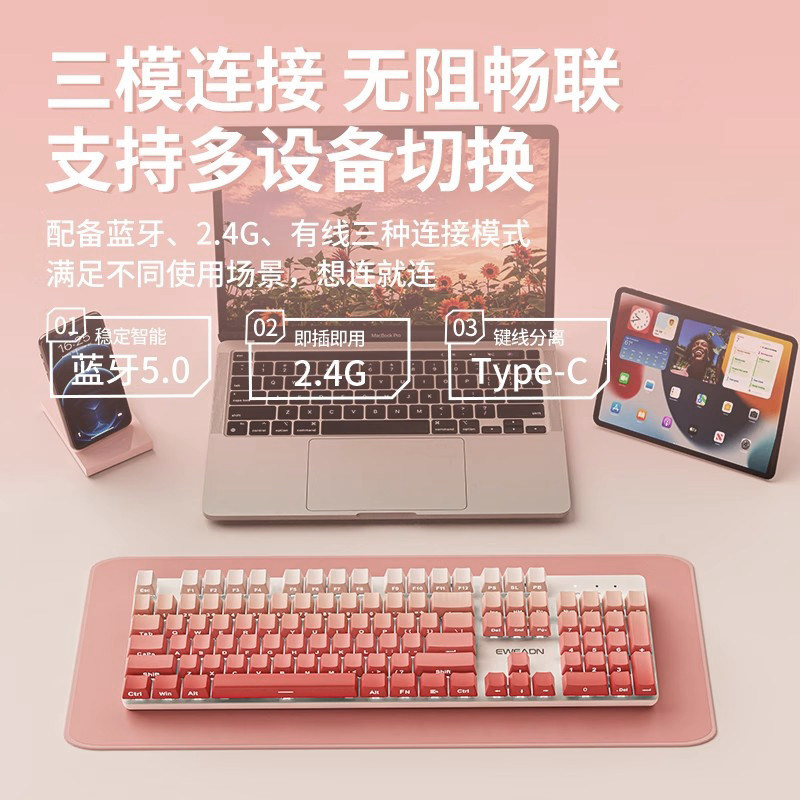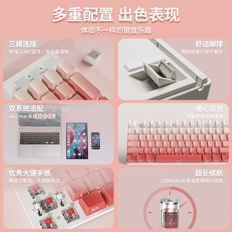 前行者腮红侧刻无线三模机械键盘