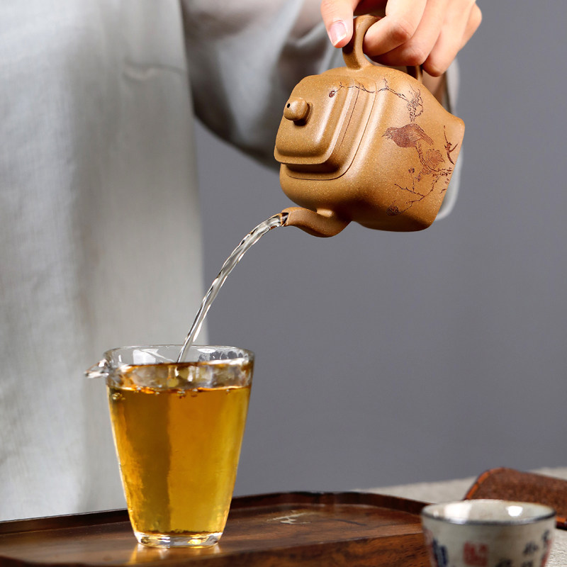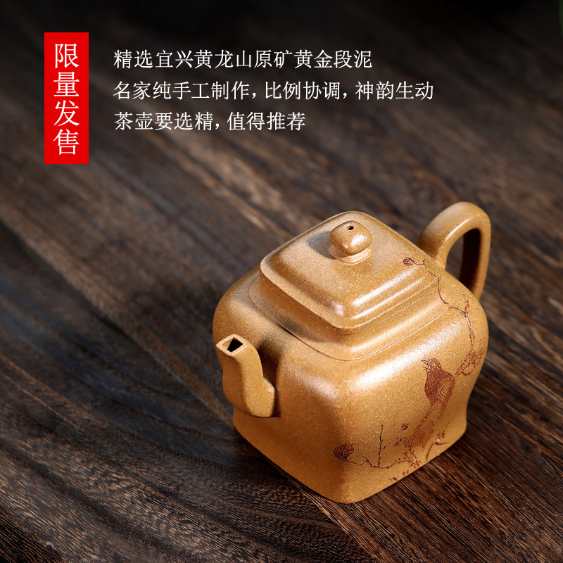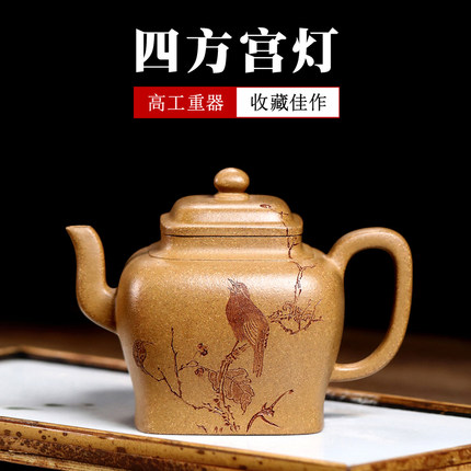 宜兴紫砂壶纯手工刻绘泡茶壶原矿段泥功夫茶具单壶 四方宫灯290CC