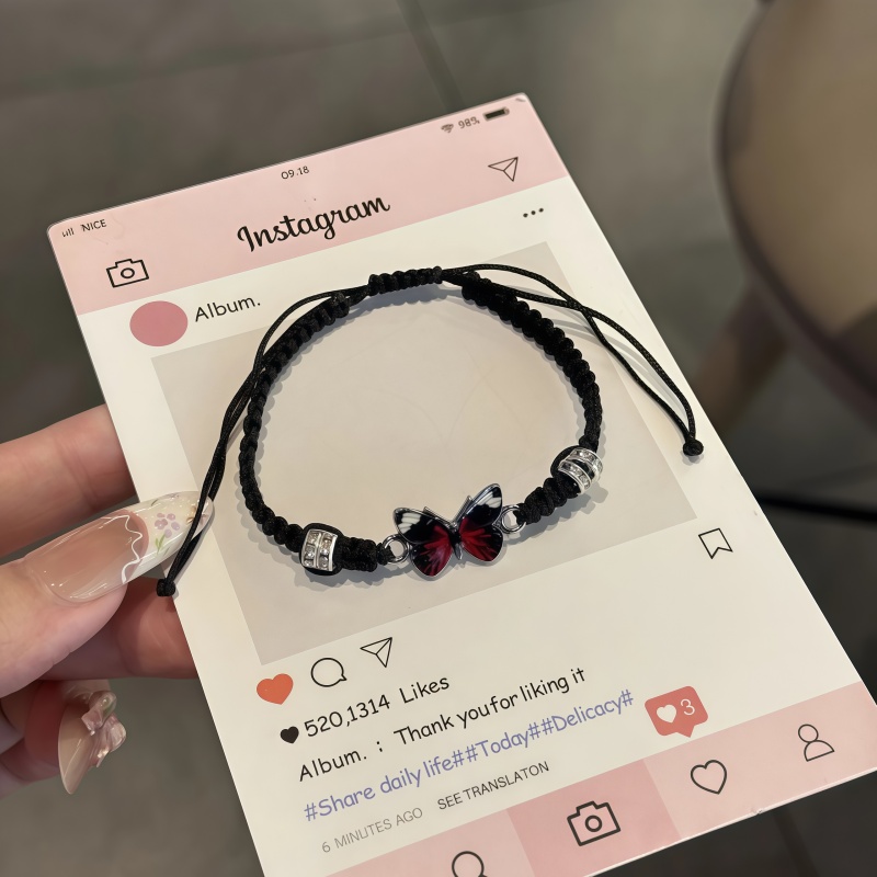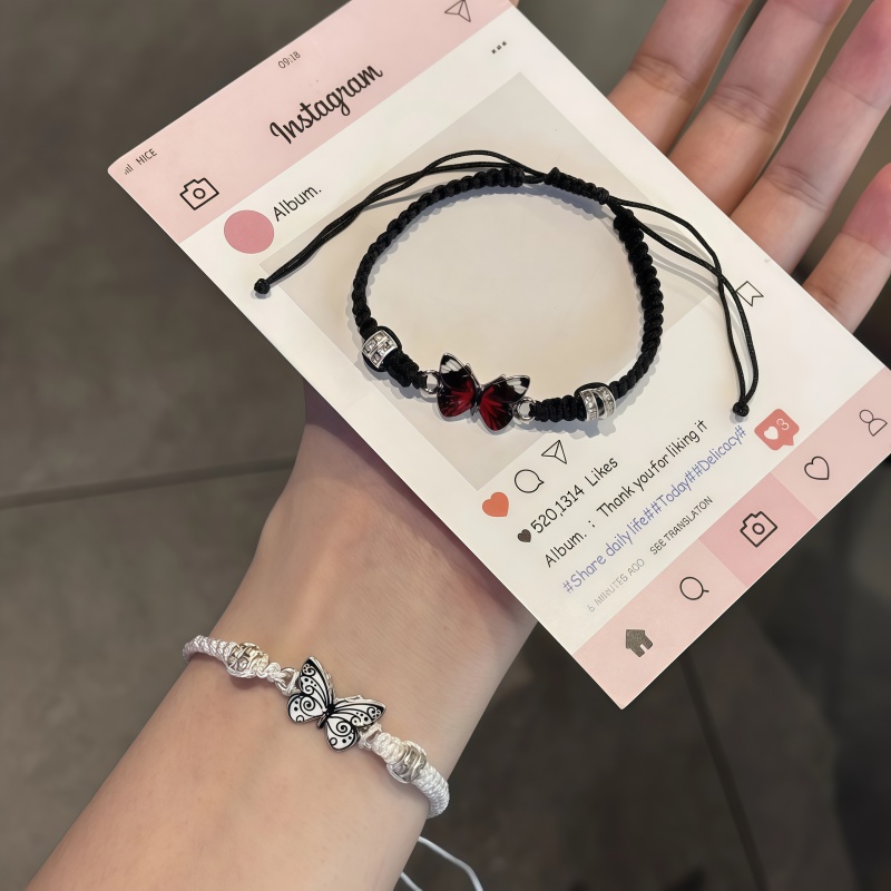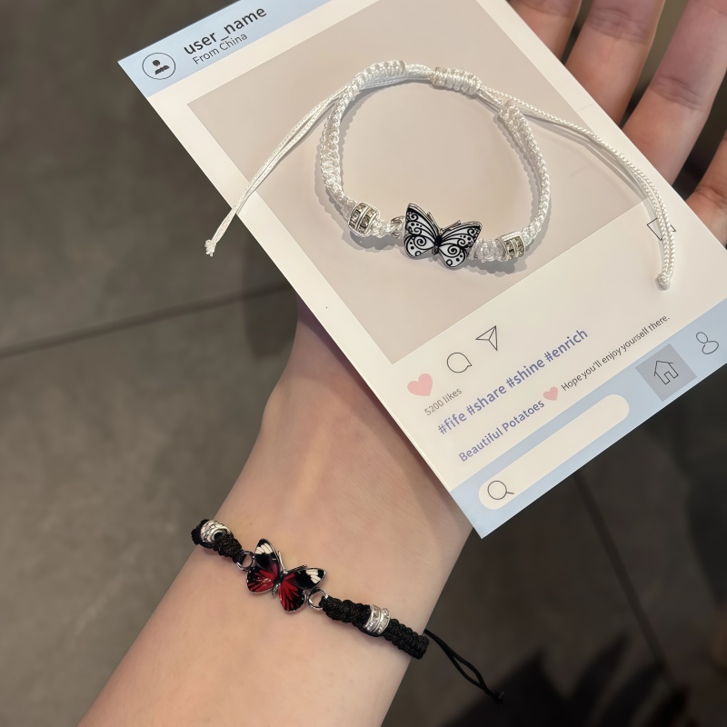 可爱森系蝴蝶手链高颜值复古可调节手工编织百搭情侣闺蜜手绳ins