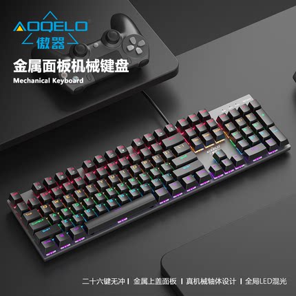傲器AMG10青轴机械键盘有线电竞游戏吃鸡七彩RGB背光金属面板