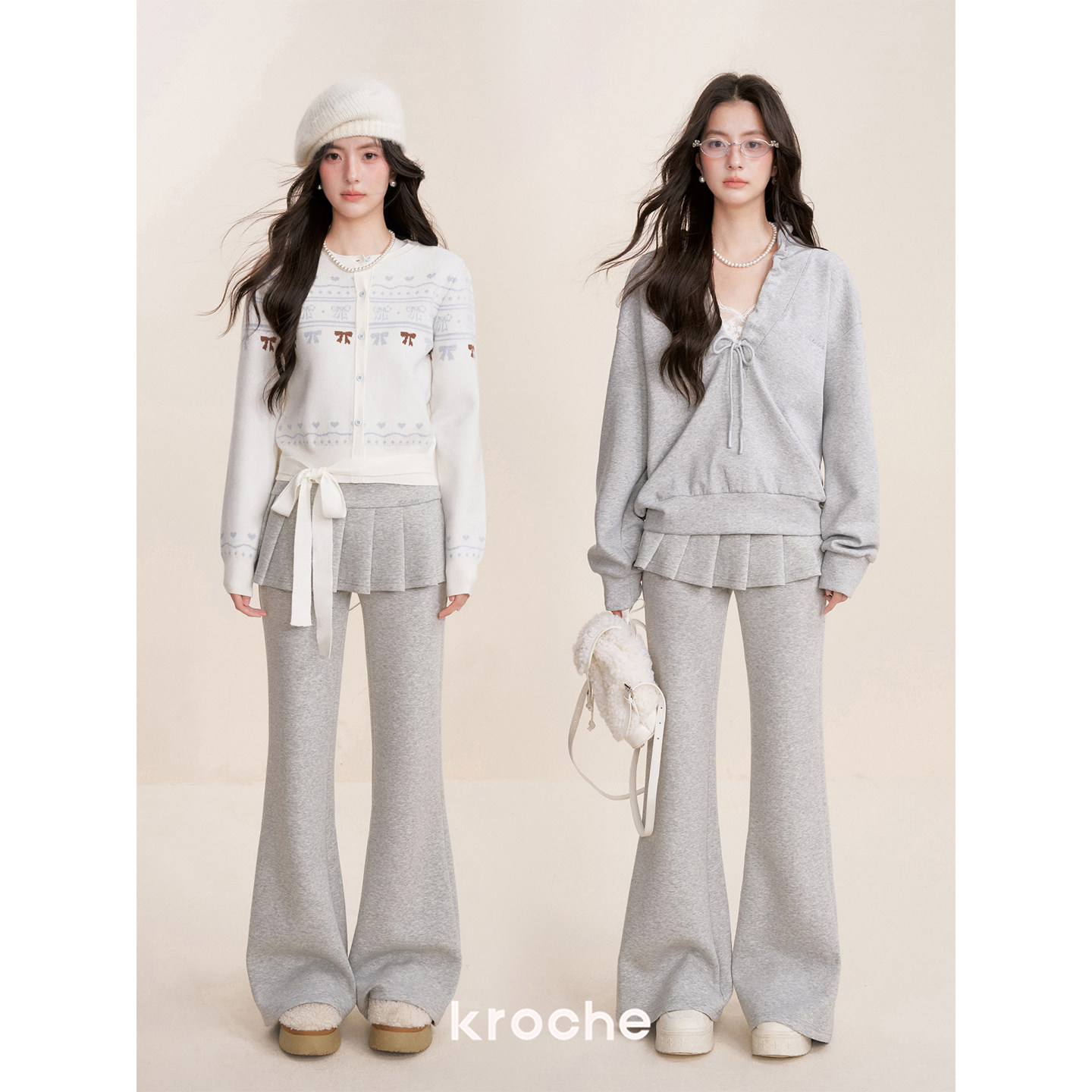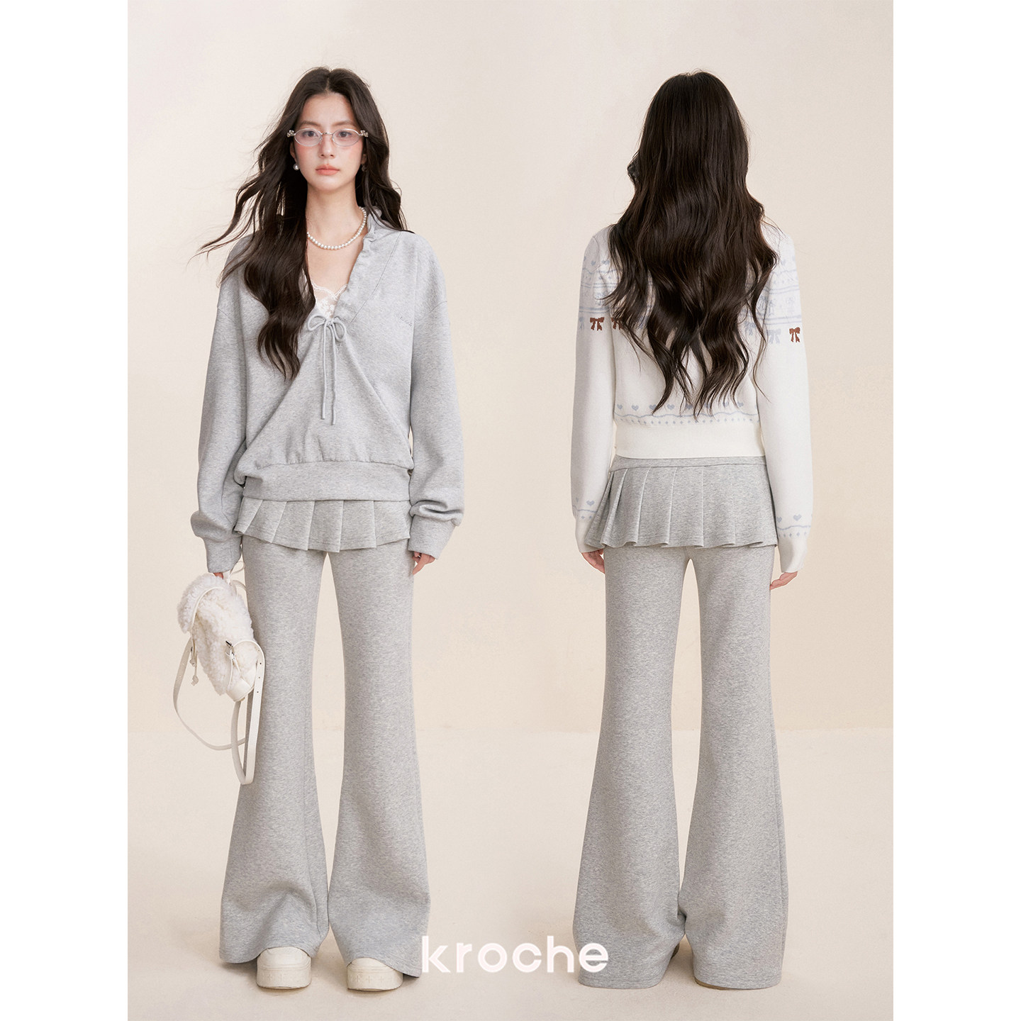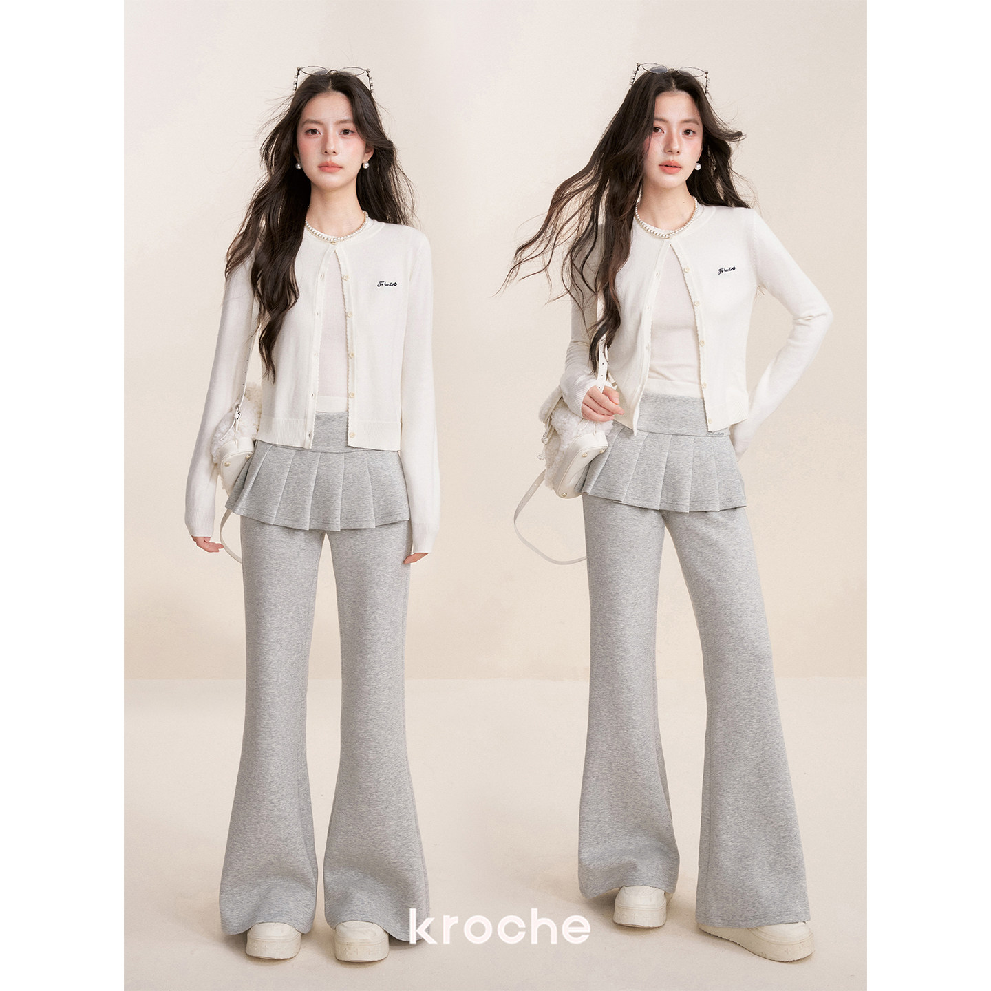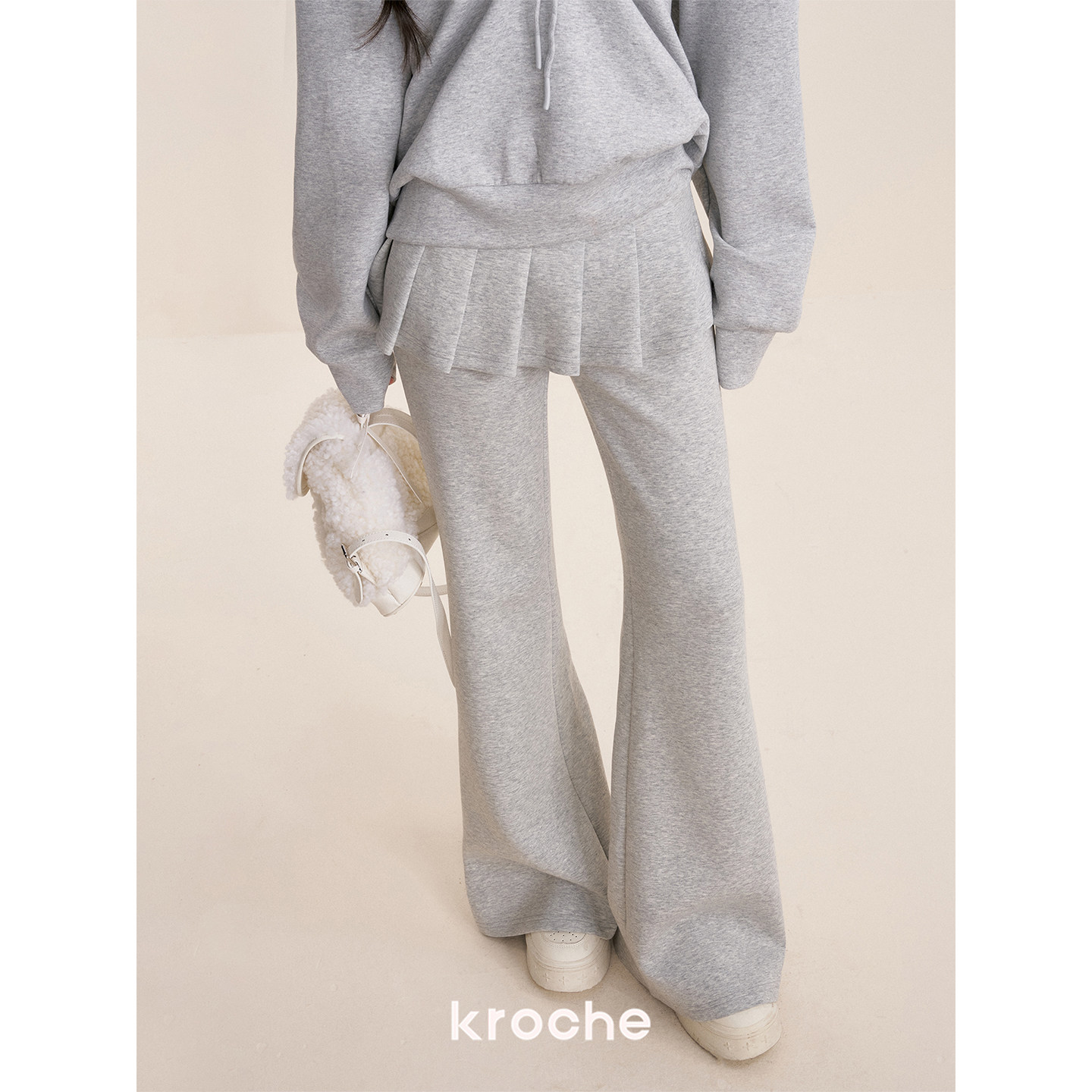 Kroche Ballet core 假两件 松紧腰A字百褶裙拼接休闲微喇裤