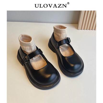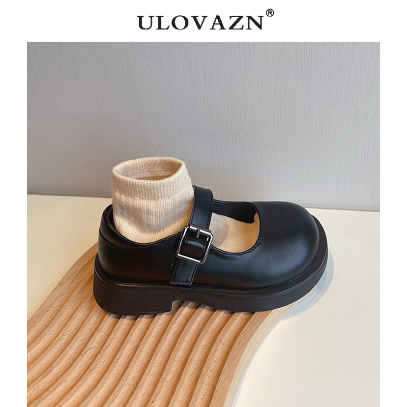 日本Ulovazn童鞋~女童公主鞋2025新款黑色单鞋洋气百搭儿童小皮鞋