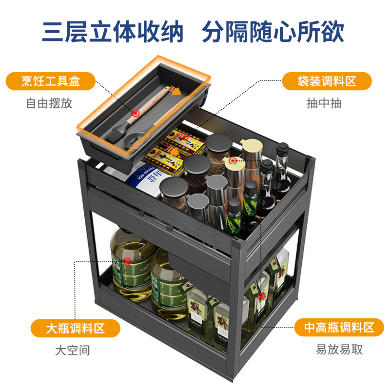 格麦厨房调味拉篮抽屉式厨柜内置抽屉收纳调料篮橱柜双层调味篮