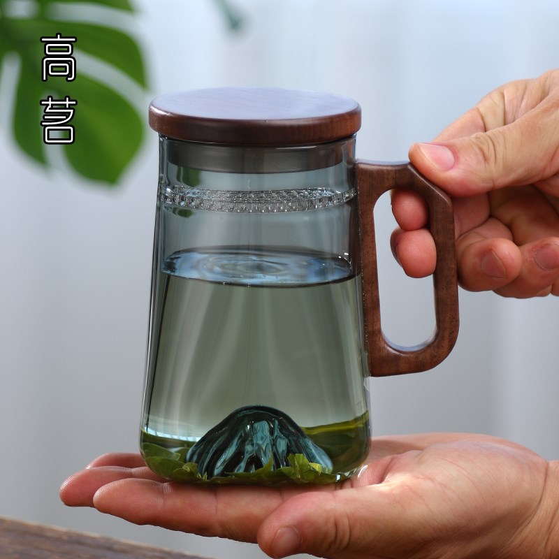 月牙杯过b滤茶杯个人专用高档玻璃杯水杯男士茶水分离泡茶杯子男