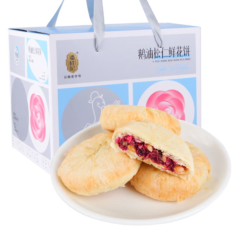 潘祥记鹅油鲜花饼礼盒玫瑰松仁鲜花饼糕点零食小吃伴手礼云南特产