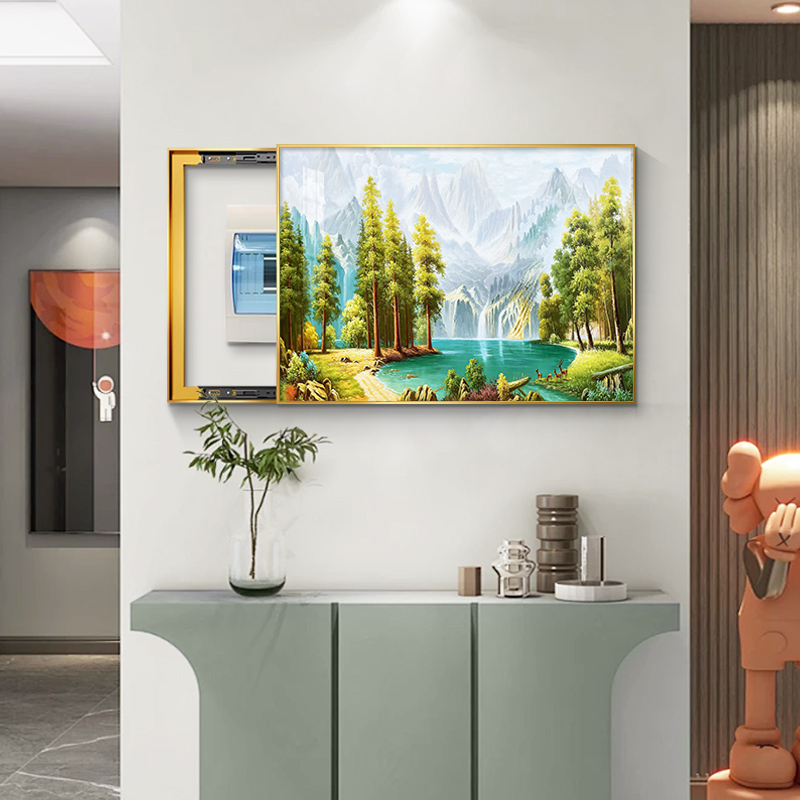 日照金山电表箱装饰画2025新款山水画配电箱电闸盒免打孔遮挡挂画