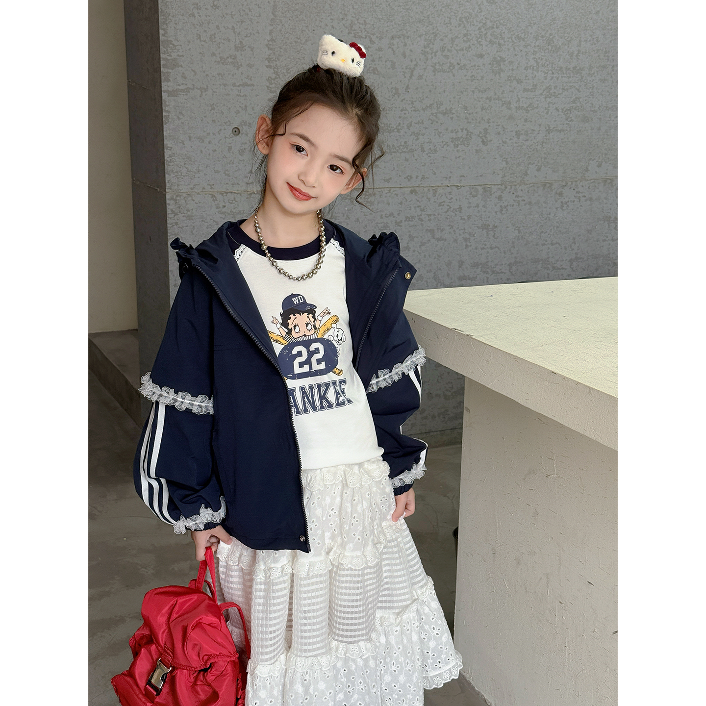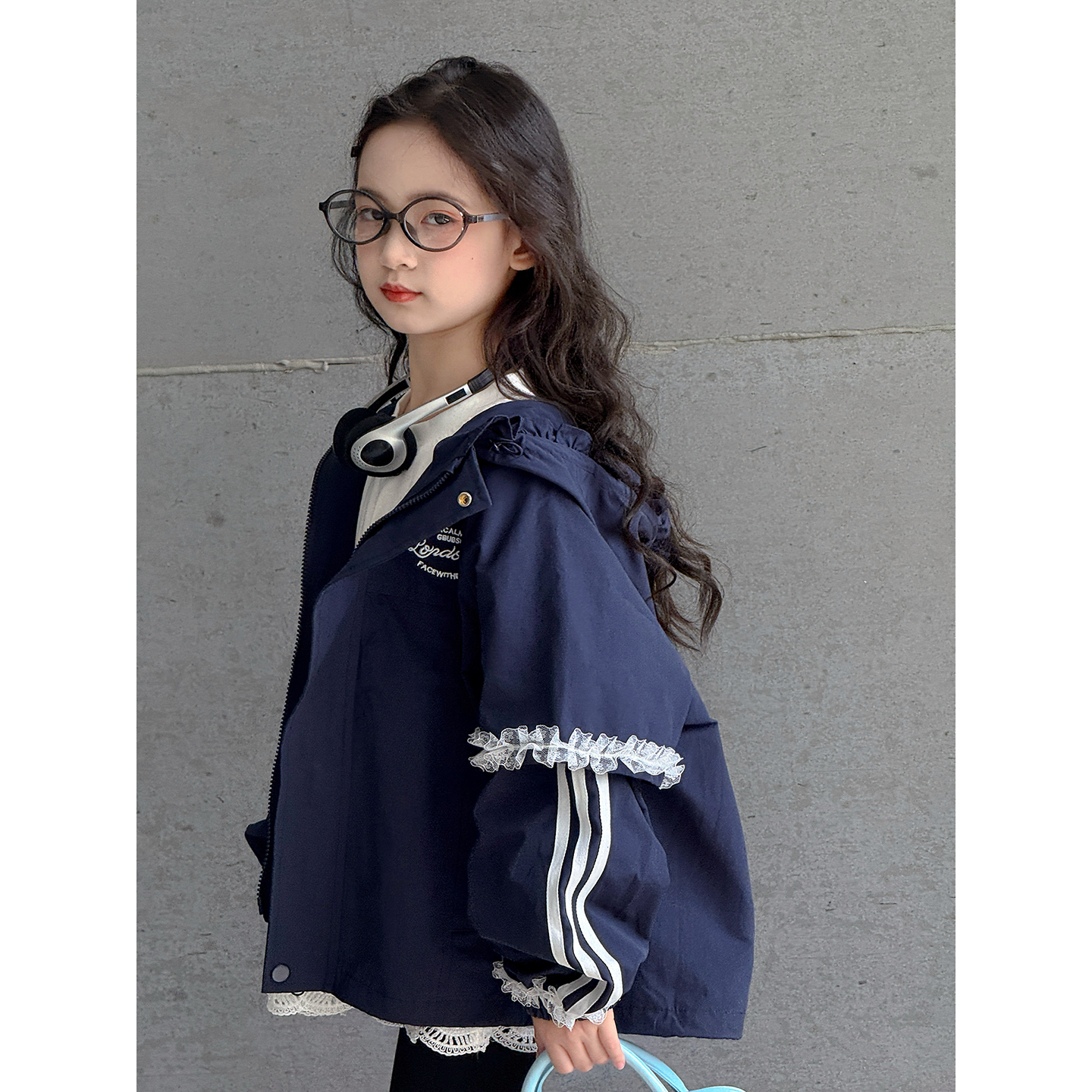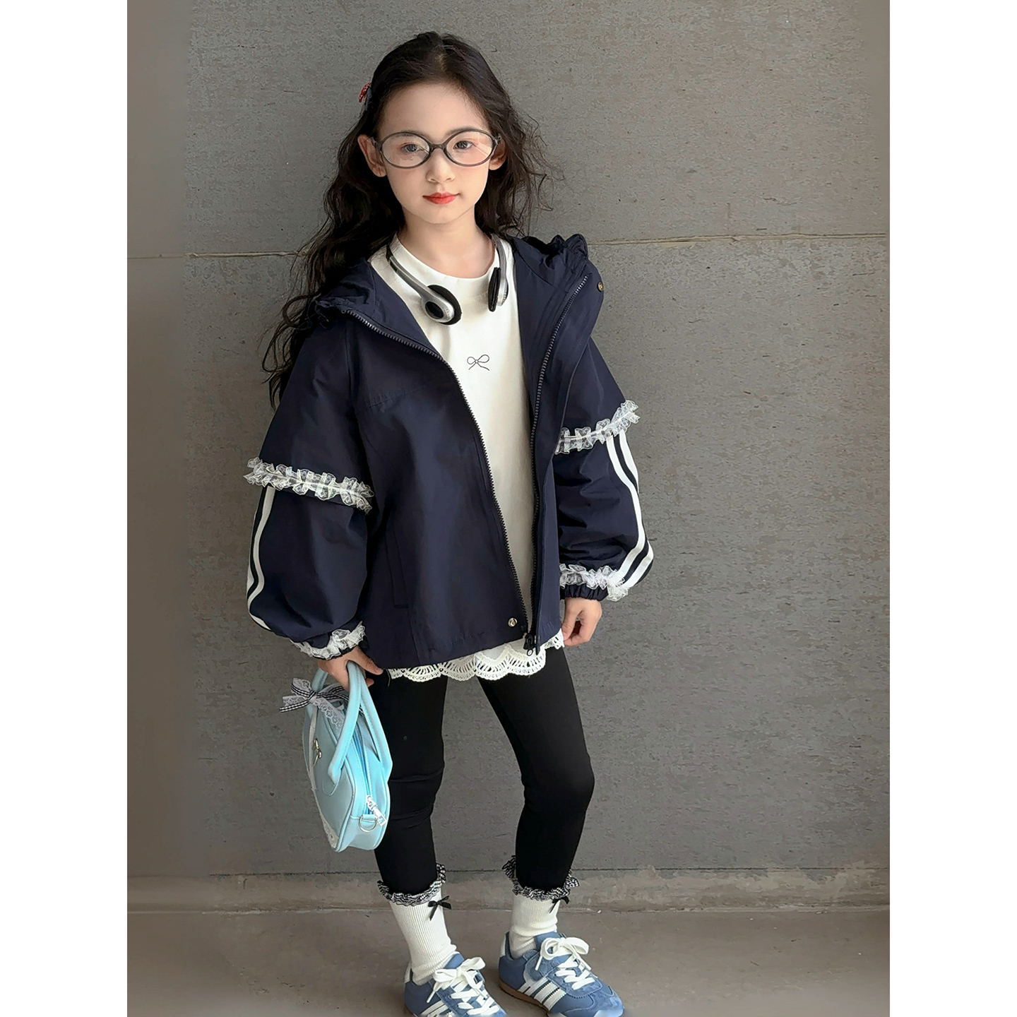 女童外套2025秋季新款儿童连帽冲锋衣秋装中大童洋气韩版宽松上衣