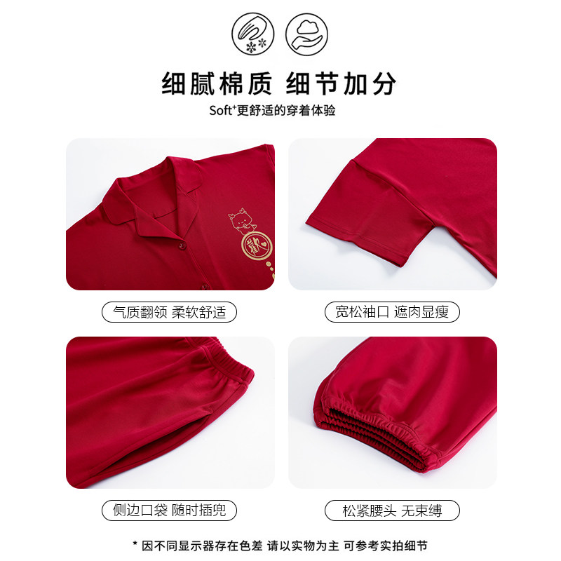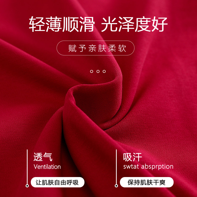 浪莎情侣睡衣纯棉红色喜庆短袖