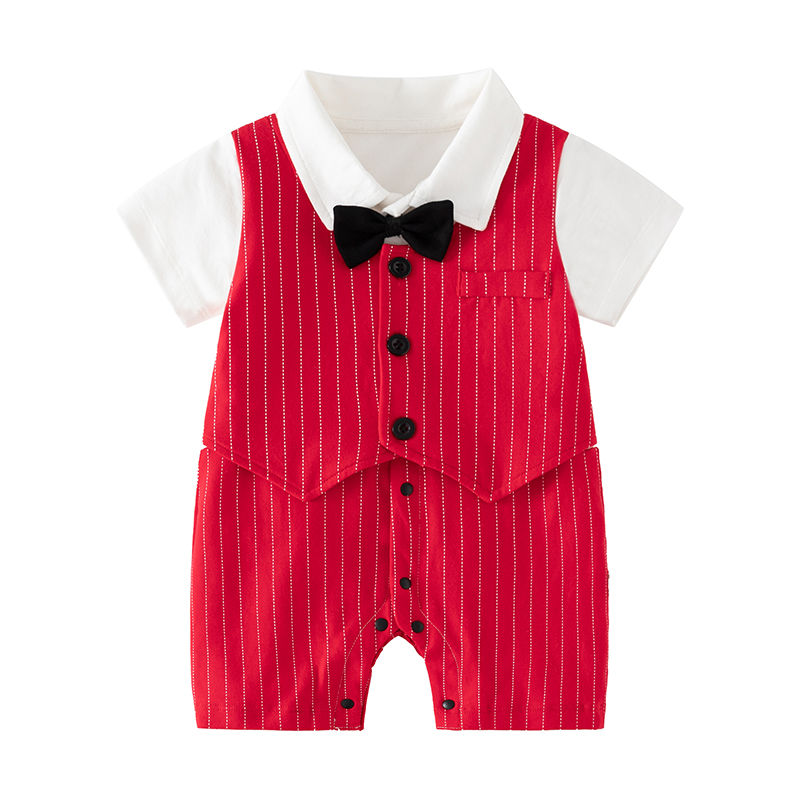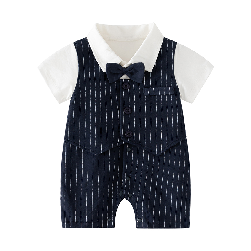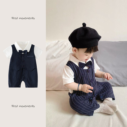 婴儿小西装少爷服夏季男宝宝连体衣绅士帅气短袖哈衣百天周岁礼服
