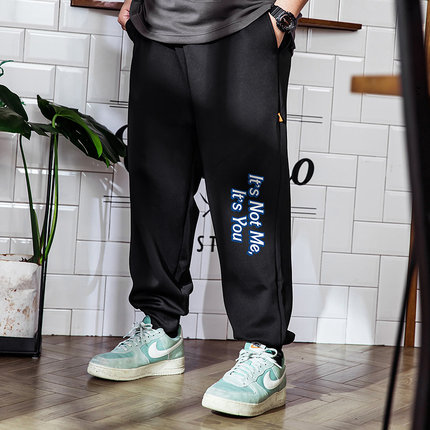 大码潮牌男装加肥加大码宽松四季款街头潮流萌趣休闲字母印花卫裤