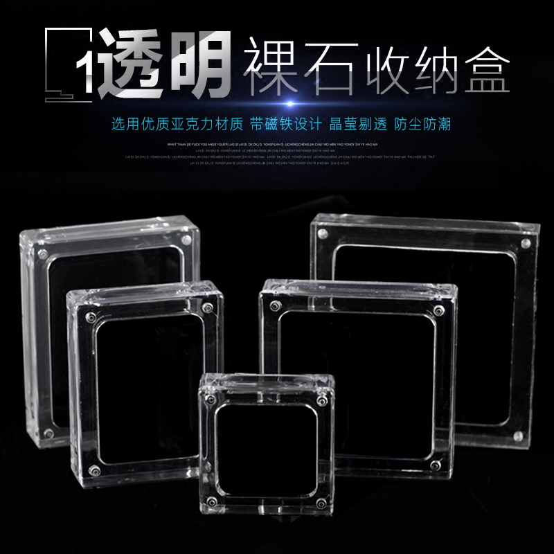 亚克力珠宝首饰盒透明展示盒饰品收纳盒宝石小盒子徽章裸石磁铁盒