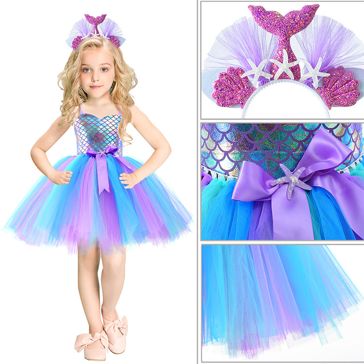 女童演出服美人鱼公主裙万圣节服装吊带蓬蓬裙网纱tutu裙彩色六一