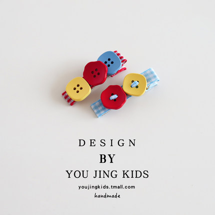 儿童拼色发夹红蓝格子女孩刘海夹发卡女童纽扣彩色碎发夹边夹头饰