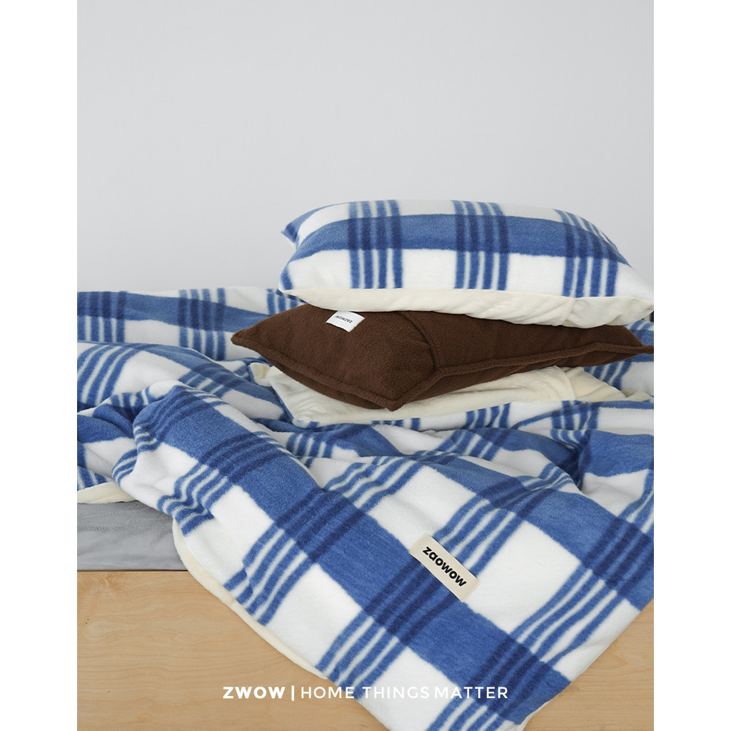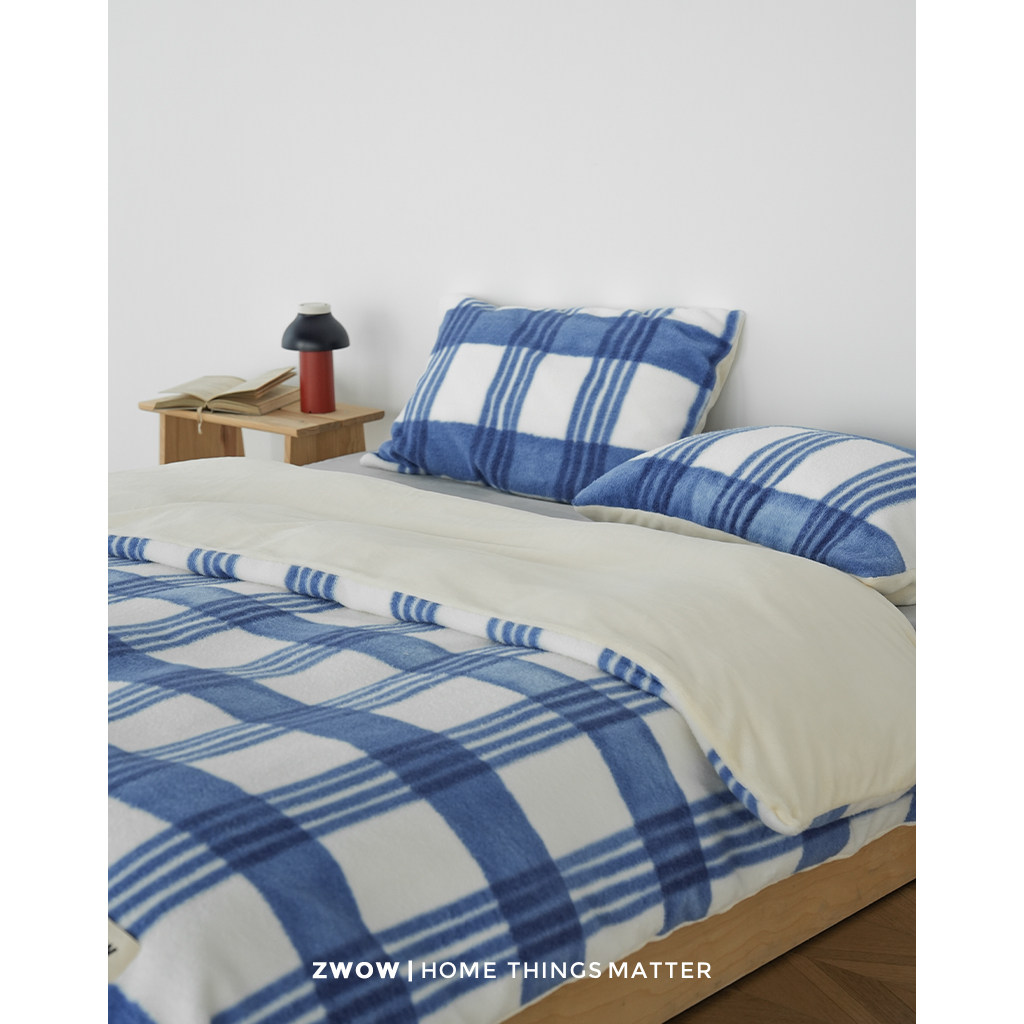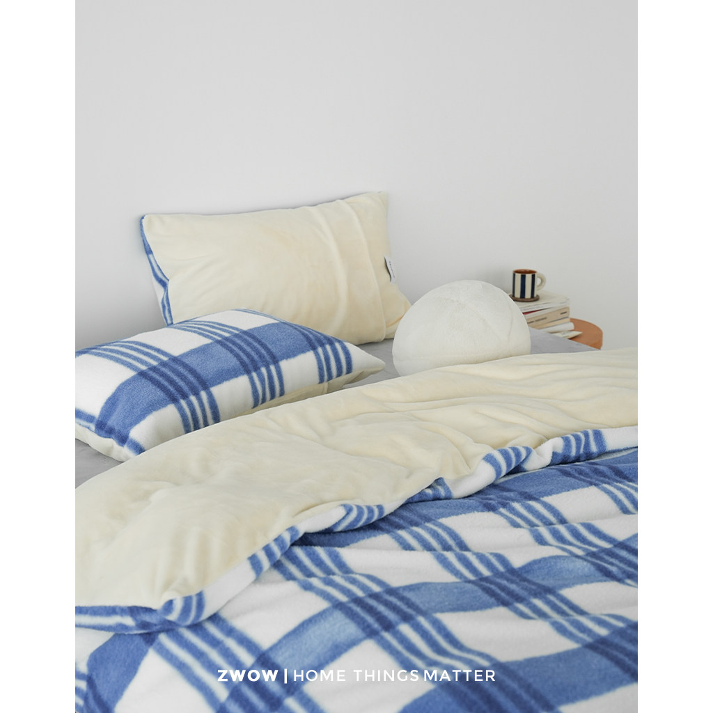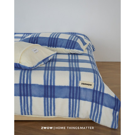 造卧zwow【水彩】冬季仿羊毛绒牛奶绒蓝色条纹保暖床单床笠四件套
