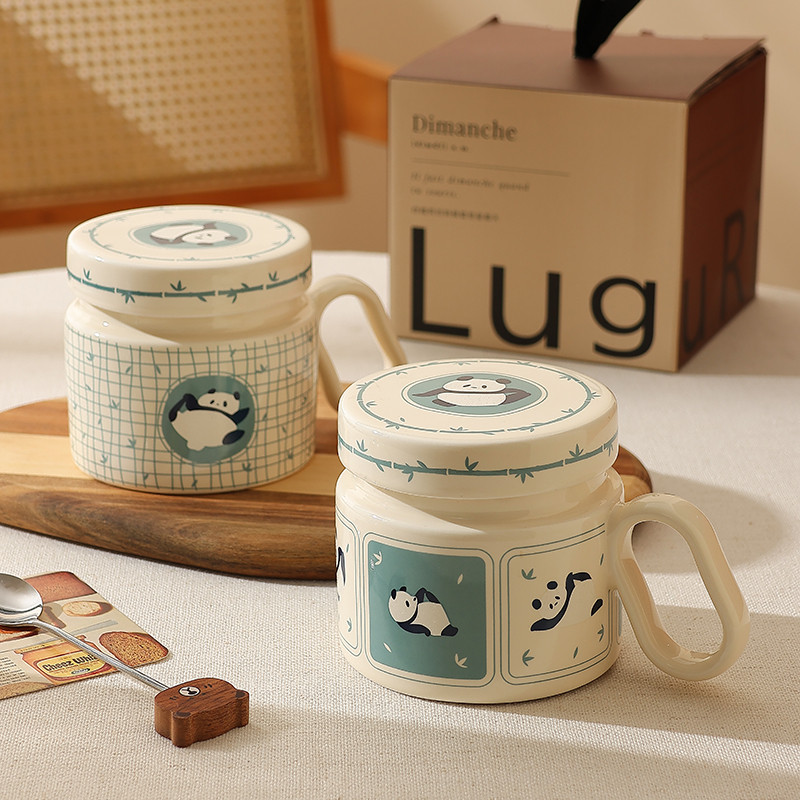 陶瓷盖杯子女生日礼物好看的茶杯熊猫马克杯家用喝水杯网红情侣杯