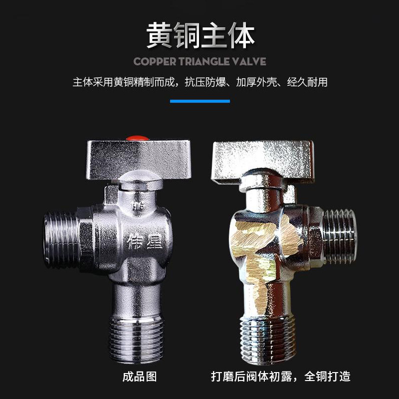 伟星三角阀全铜加厚球芯大流量角阀 马桶热水器冷热通用止水阀4分
