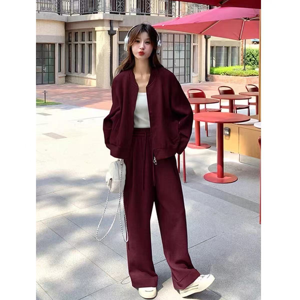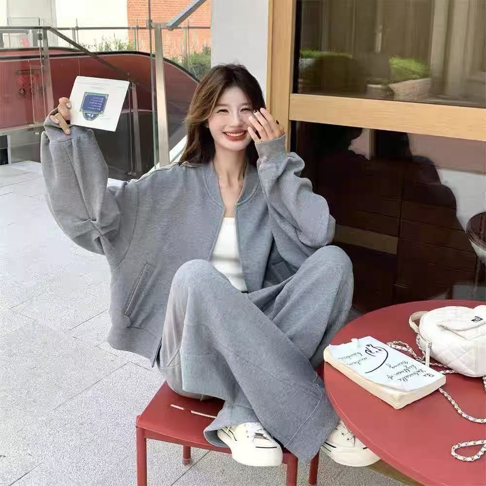 慵懒风休闲运动套装女秋冬季韩版高级感宽松开衫卫衣阔腿裤两件套
