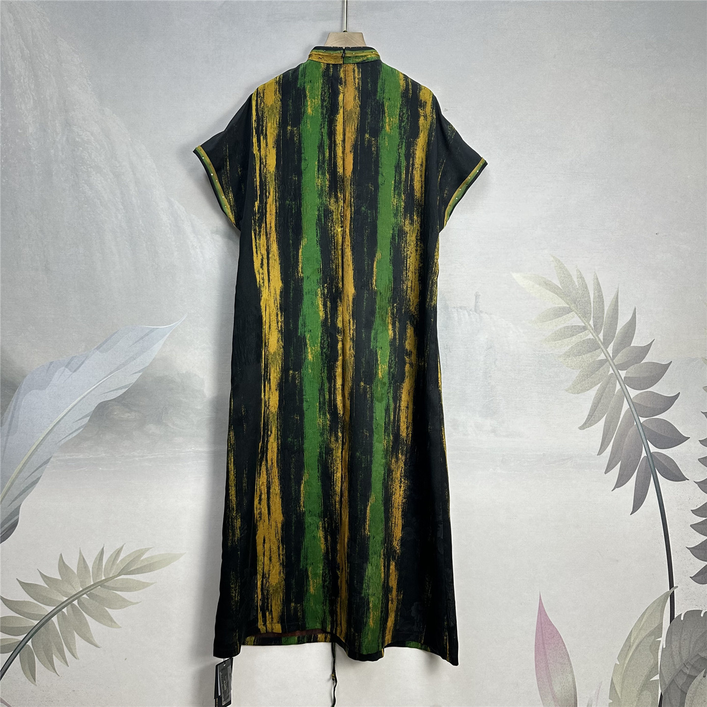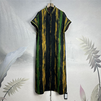 桑蚕丝香云纱透孔花罗中长连衣裙