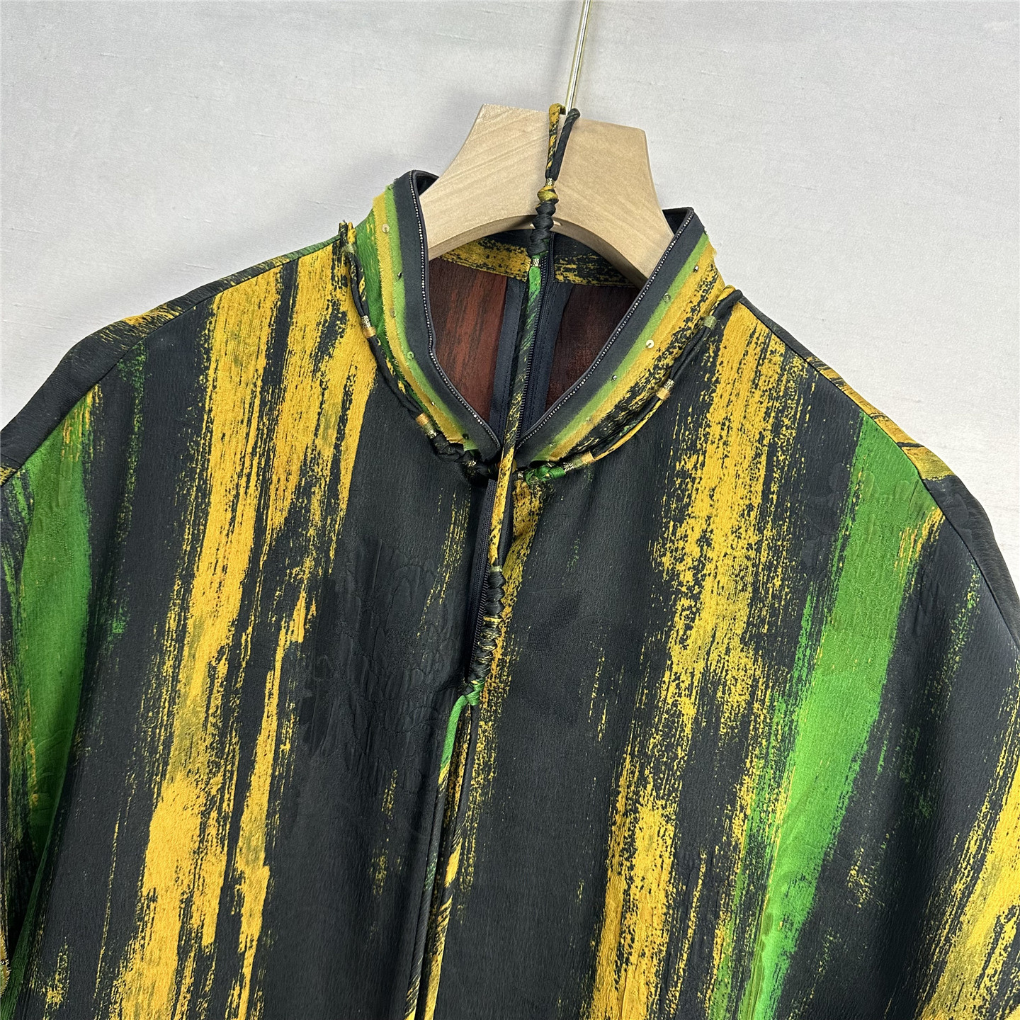 诗家~满分桑蚕丝香云纱透孔花罗中长连衣裙真丝气质改良版系带裙